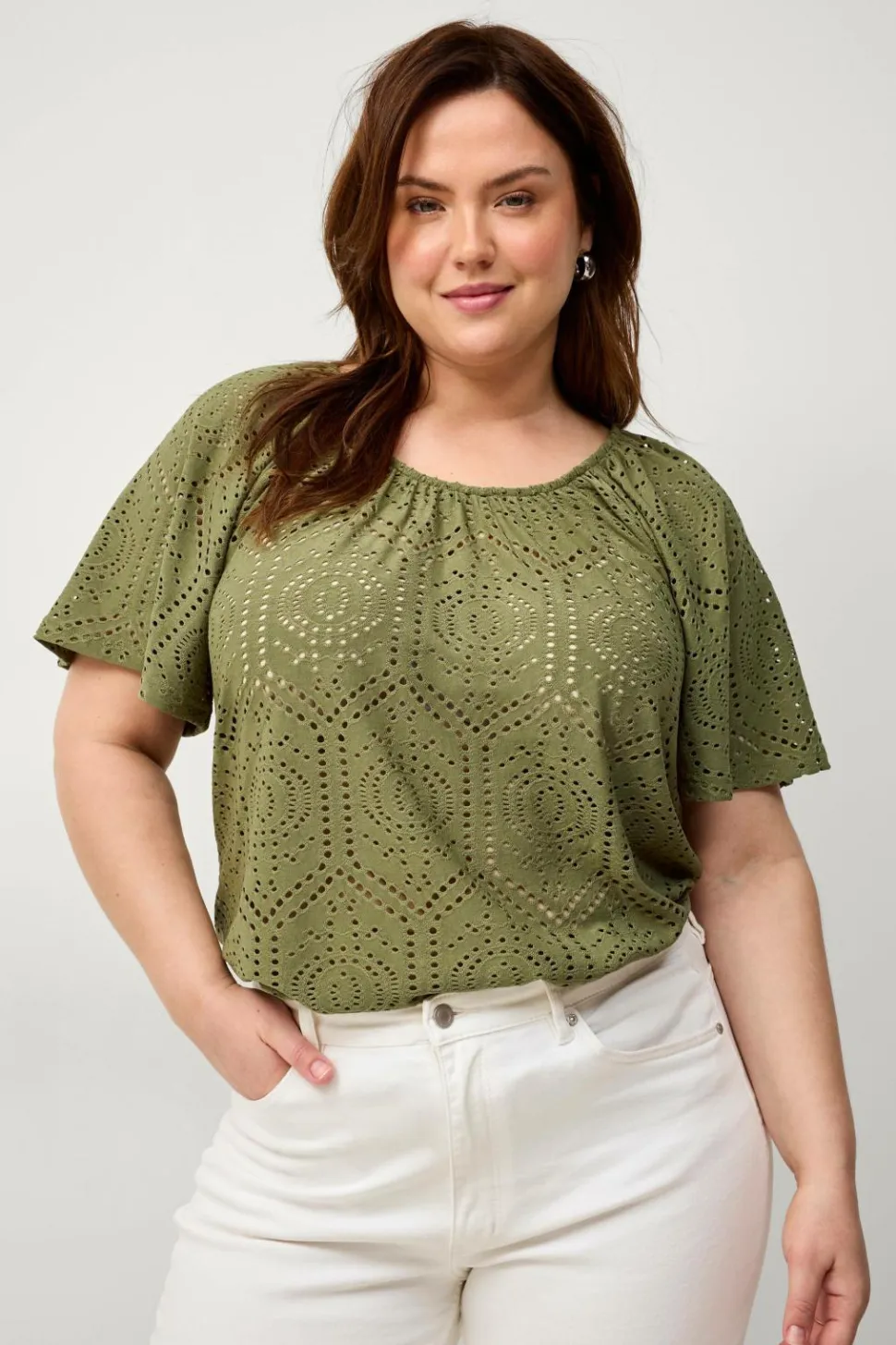 • Top i jersey med broderet hulmønster