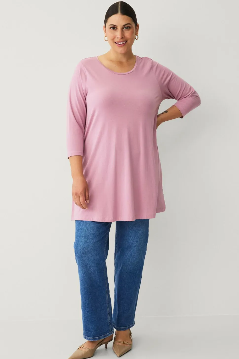 • Lige, 3/4 langt ærme