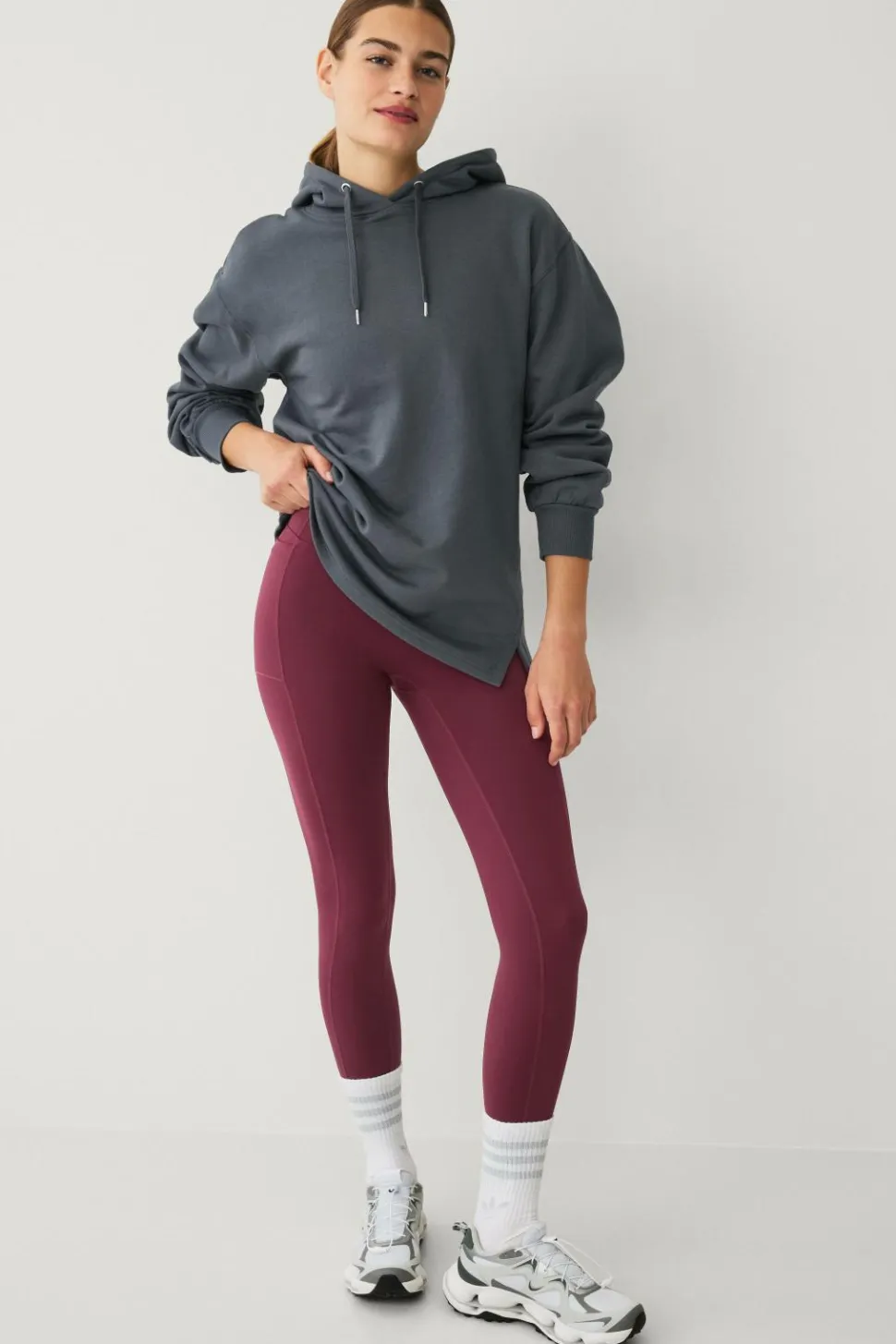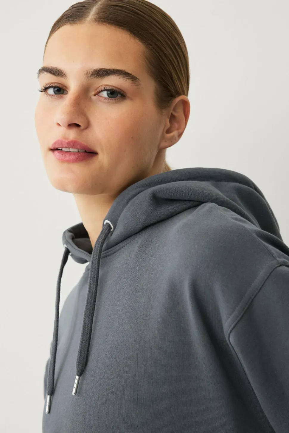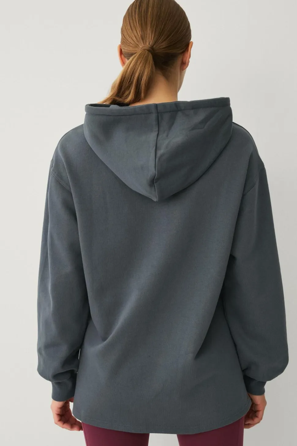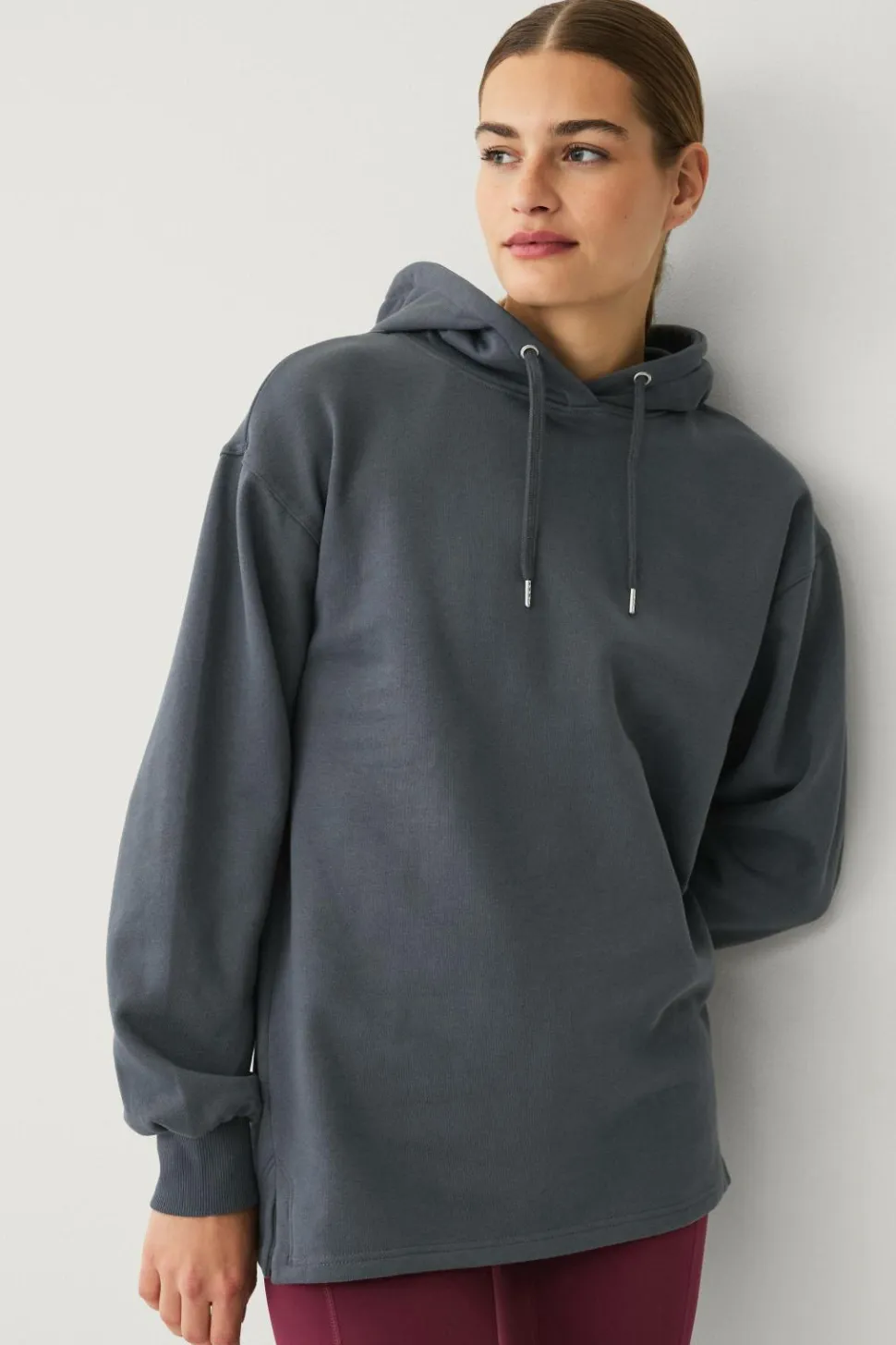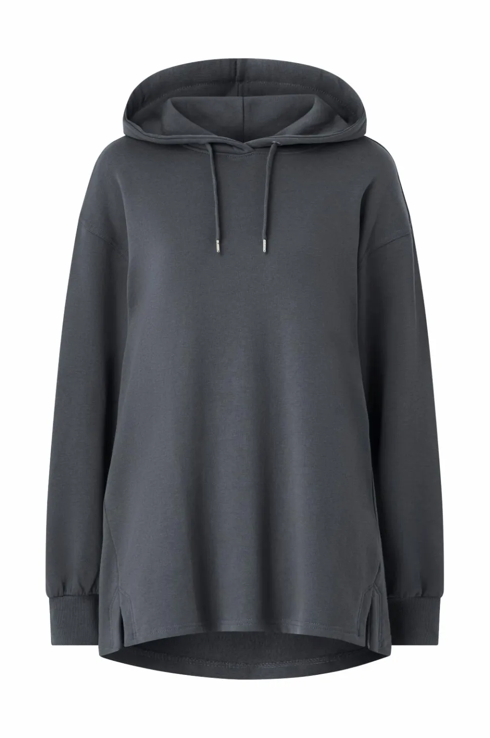 • Lang sweatshirt med hætte og træksnørre