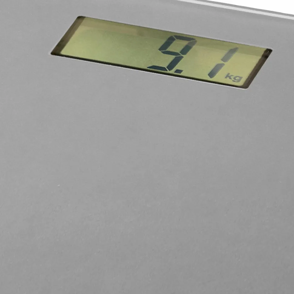 Vægten er stilfuldt designet i gråt hærdet glas med let afrundede kanter og har tydelige og letlæselige digitale tal. Vægten kan håndtere vægte på op til 180 kg og drives af det medfølgende batteri. Med indbyggede sensorer med høj præcision er vægtens fejlmargin maksimalt 100 gram. Hvis vægten ikke er i brug, slukker den automatisk.