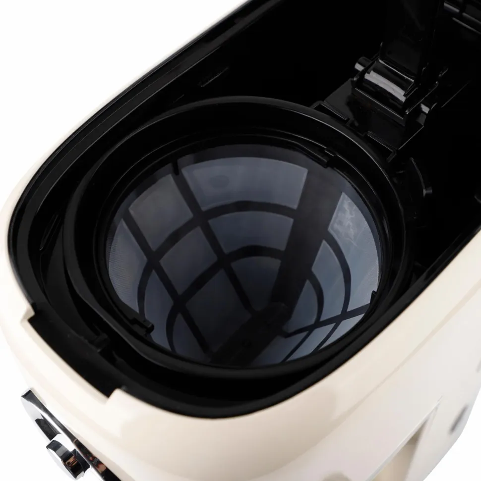 Kaffemaskinen har låg og håndtag i sort, varmebestandigt materiale. Kaffemaskinen har også et medfølgende genanvendeligt filter, drypbeskyttelse og automatisk slukning. Med denne superstilfulde kaffemaskine får du lækker friskbrygget kaffe både hurtigt og bekvemt.