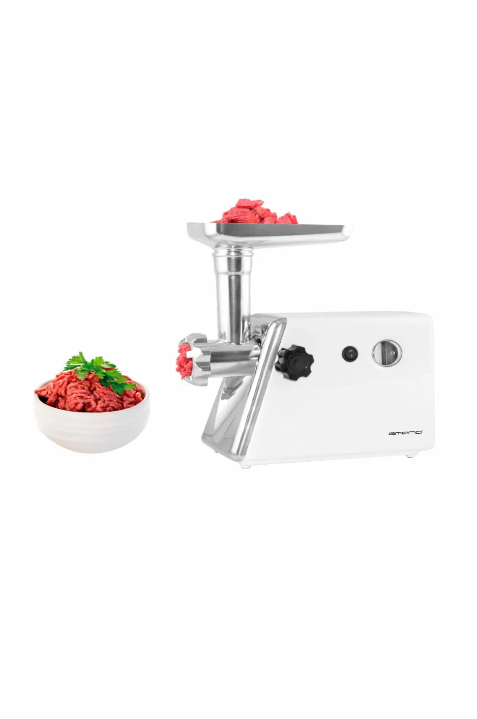 Denne kødhakker kan hakke kød til fars og pølser på få sekunder! Med 3 rustfri slibeskiver, hvor du kan vælge din favorit hakkefinhed; fin, medium eller grov. Let at rengøre, da alle dele er aftagelige.- 3 rustfri stål slibeskiver- Baglænsfunktion- Strømafbryder- Pølseudstopper- Blad i rustfrit stål- Topydelse: 1200 watt- Effekt: 450 watt- Gummifødder for stabil brug