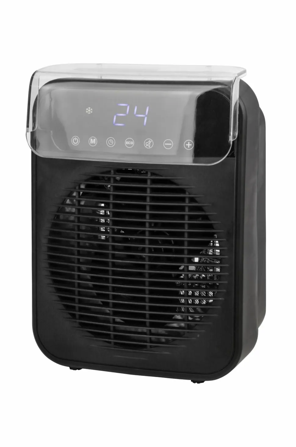 Effektiv og fleksibel varmeblæser med fjernbetjening og timer.
