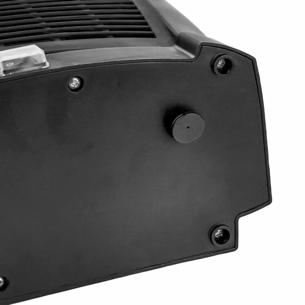 Designet er stilfuldt og moderne i mat sort med store og enkle betjeningsknapper. Effekten på 2000 W varmer hurtigt både større og mindre rum op. Indikatorlampen viser, at varmeblæseren kører, og tipbeskyttelsen slukker varmeblæseren, hvis den vælter.