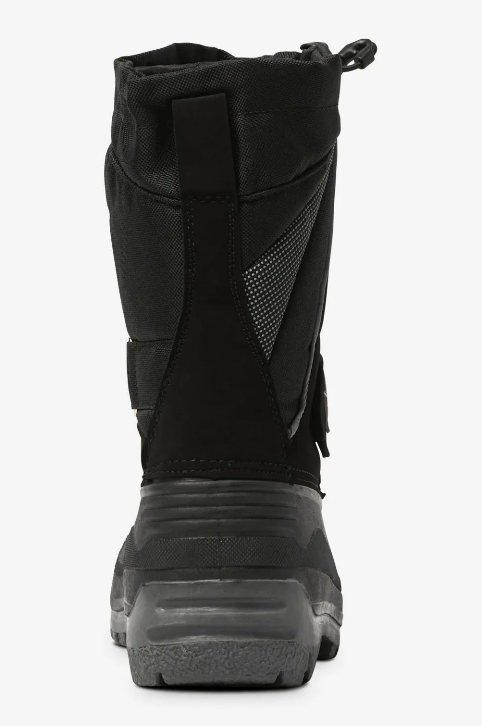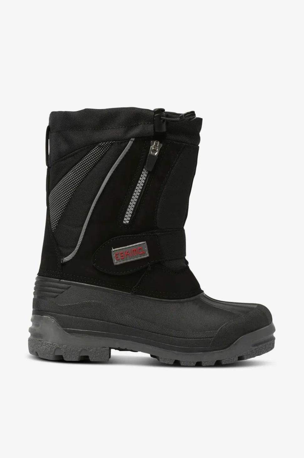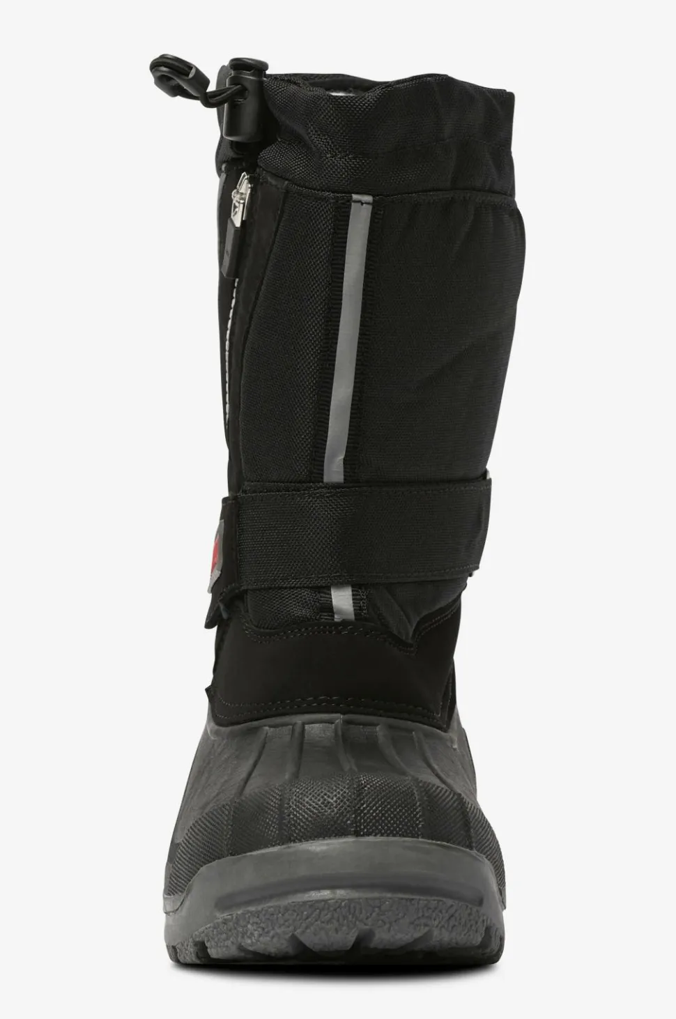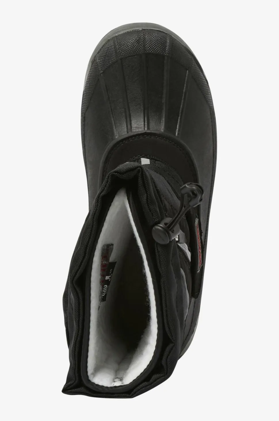 Solide vinterboots med vandtæt gummifod og skaft i vand- og smudsafvisende polyamid. Robust og velegnet til sjap og vådt føre. Regulerbar velcrorem over vristen. Skrå lynlås på skaftet med snelås bagved. Elastisk løbegang med stopper foroven på skaftet. Meget praktisk model med udtagelig inderstøvle i uld som varmer ned til -30 grader. Desuden følger der et ekstra par inderstøvler med. Mellemsålen har varmereflekterende foliesål, som fungerer som kuldebarriere. Ydersålen er helstøbt i affjedrende, groftmønstret og skridsikkert gummi.