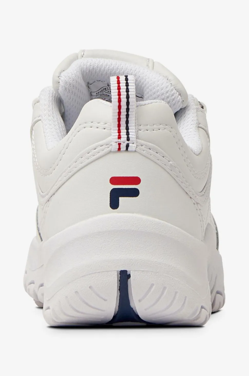 Sneakers Strada Low Kids fra FILA i 90’er-model med overdel i skind. Vatteret åbning og vævet trækstrop bagpå. Udtagelig indersål og kraftig ydersål.