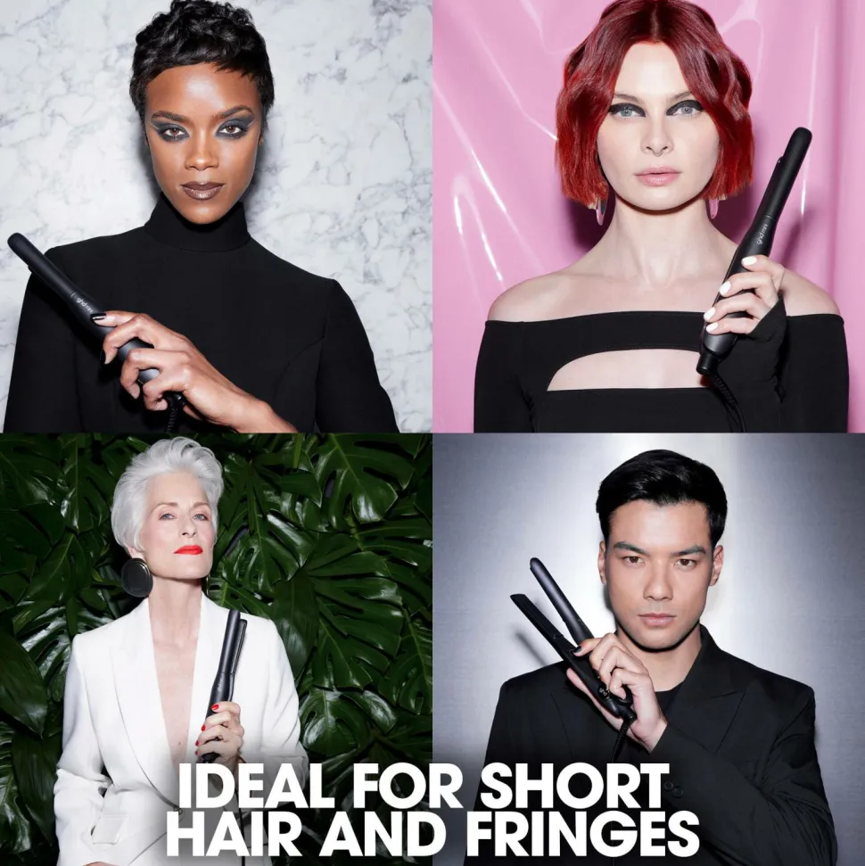 ghd præsenterer Mini Hair Straightener i sort, et perfekt skræddersyet værktøj til at style kort hår med præcision. Det er takket være den avancerede slimline dual-zone-teknologi, der konstant overvåger varmen på begge plader og opretholder den optimale stylingtemperatur på 185 °C for slanke og sunde resultater. De glatte og konturerede keramiske plader giver et problemfrit glid, samtidig med at de bevarer stylingkontrollen, hvilket sikrer glatte og præcise resultater fra hovedbunden, selv på korte hårstrå. Det slanke og afrundede design giver mulighed for at skabe stramme krøller og ekstra detaljer til alsidig styling og professionel kreativitet.