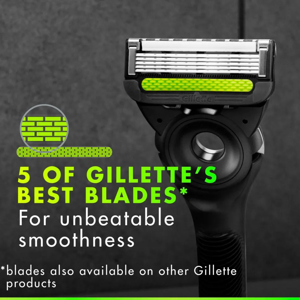 Denne innovative barbermaskine har fem af Gillettes bedste blade og en åbning i midten, hvor eksfolieringsstrimlen passer ind og klikker på plads med et enkelt klik.