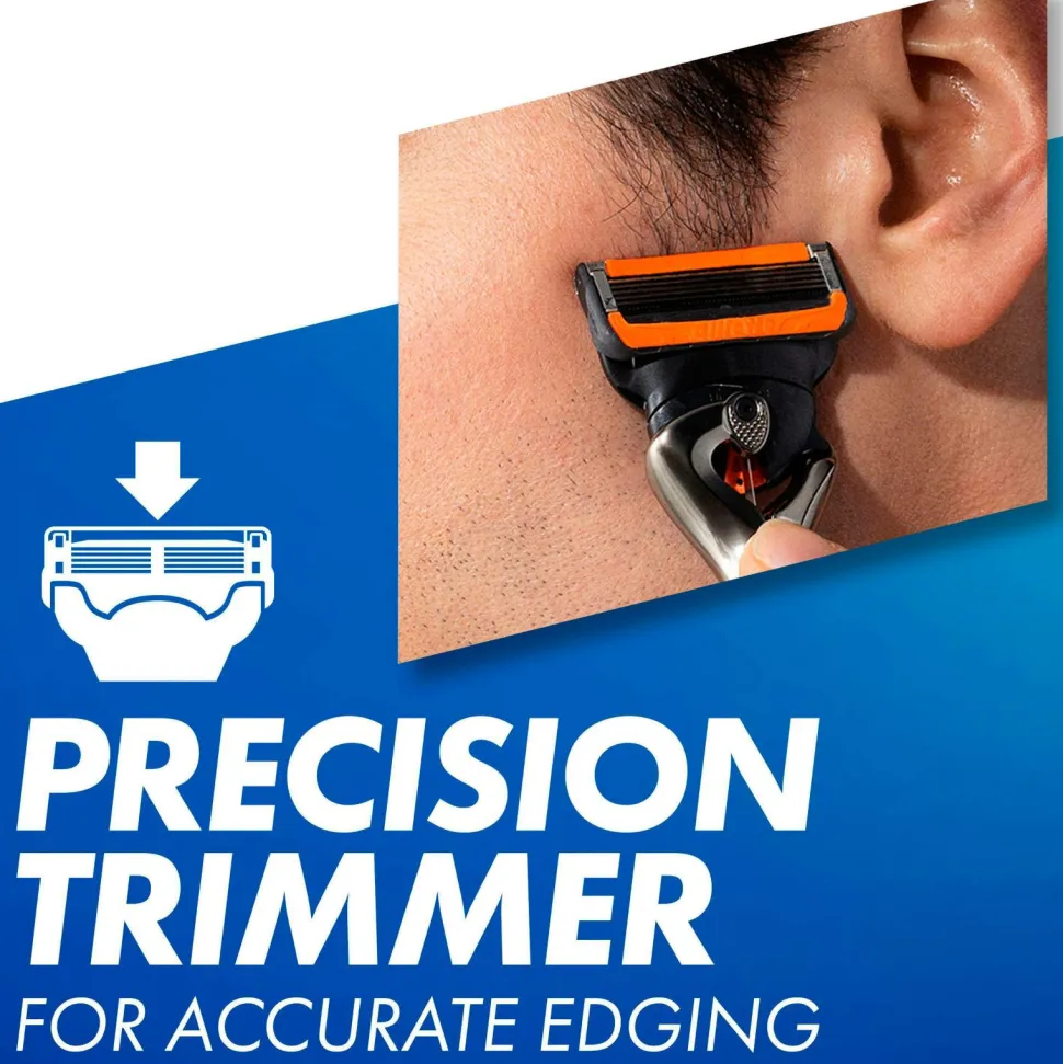 Barberbladet har en større smørestrimmel* for komfort og glid. Præcisionstrimmeren på bagsiden er perfekt til styling af ansigtshår, især på svært tilgængelige steder. De ultraskarpe barberblade med anti-friktion sikrer en glat barbering og passer til alle Gillette 5-bladede håndtag (undtagen GilletteLabs). ProGlide-refills kan vare op til en måned.