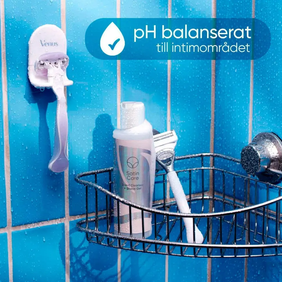 2-i-1 Cleanser + Shaving Gel, der kan bruges under barbering for at give et beskyttende lag af glid for at forhindre irritation under intim barbering eller dagligt som en blid sæbe. Dermatologisk og gynækologisk testet, pH-afbalanceret. Indeholder ikke parabener, farvestoffer, parfume eller silikoner.