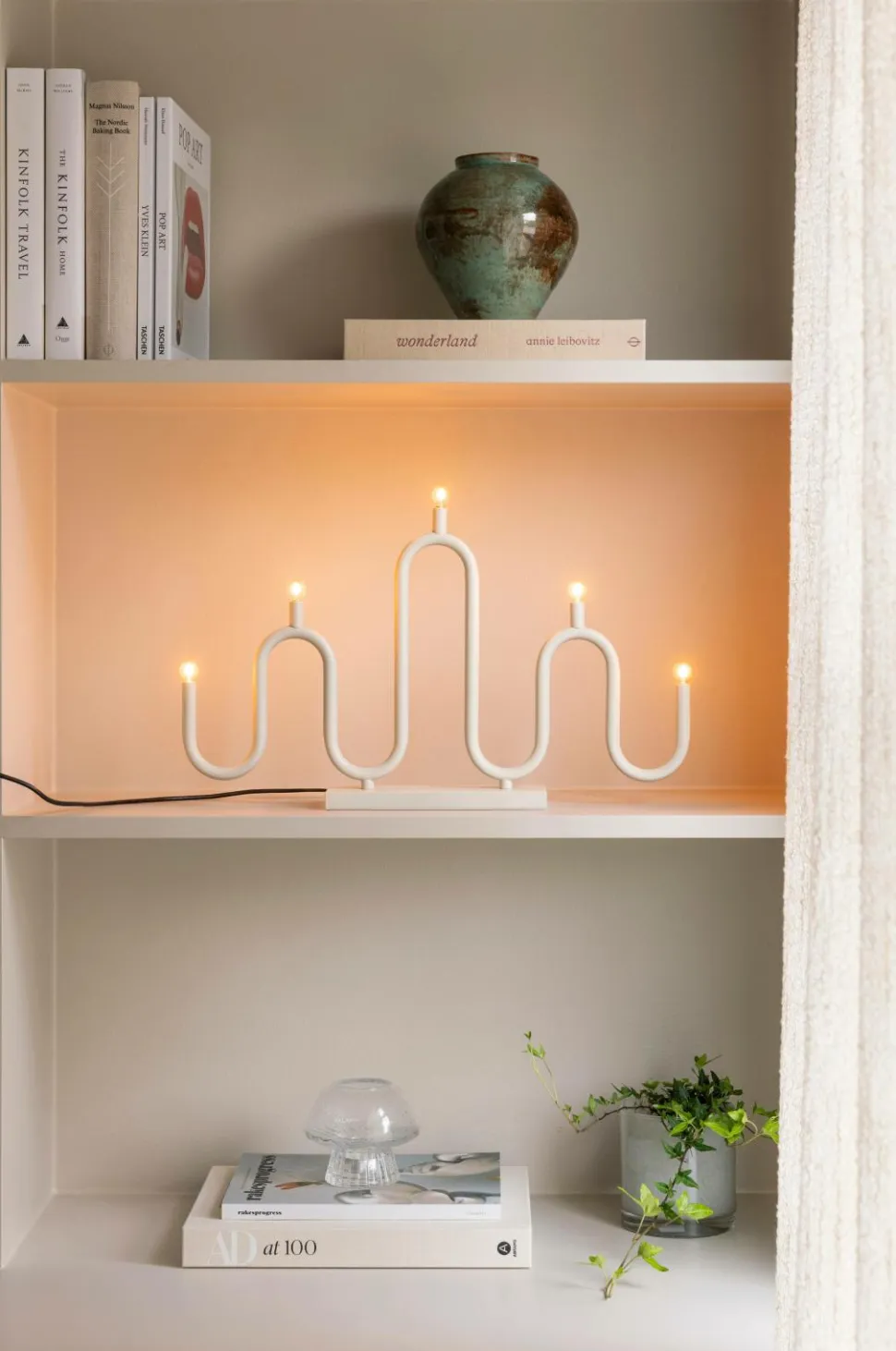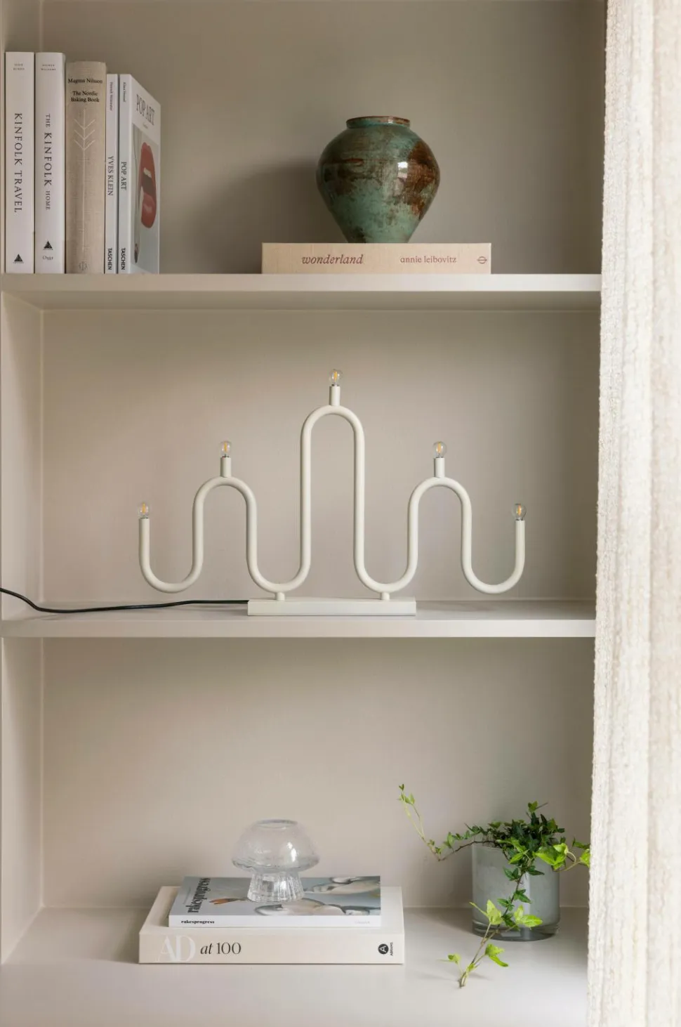 Noel har et blødt og bølgende formsprog, hvor metalrørene er bøjet i hånden i forskellige niveauer, hvilket skaber den klassiske form af en adventsstage. Noel ser lige så godt ud i vinduet som på et sidebord. Lampen leveres med et 200 cm langt sort kabel med sort afbryder, transformer og europastik. Undersiden er dækket af filt for at beskytte overflader mod ridser. Denne lampe er kompatibel med E10-pærer, maks. 3W/34V, lyskilder er inkluderet. (Ac/Dc, 34V, 0,25W, 2700K, 14lm).