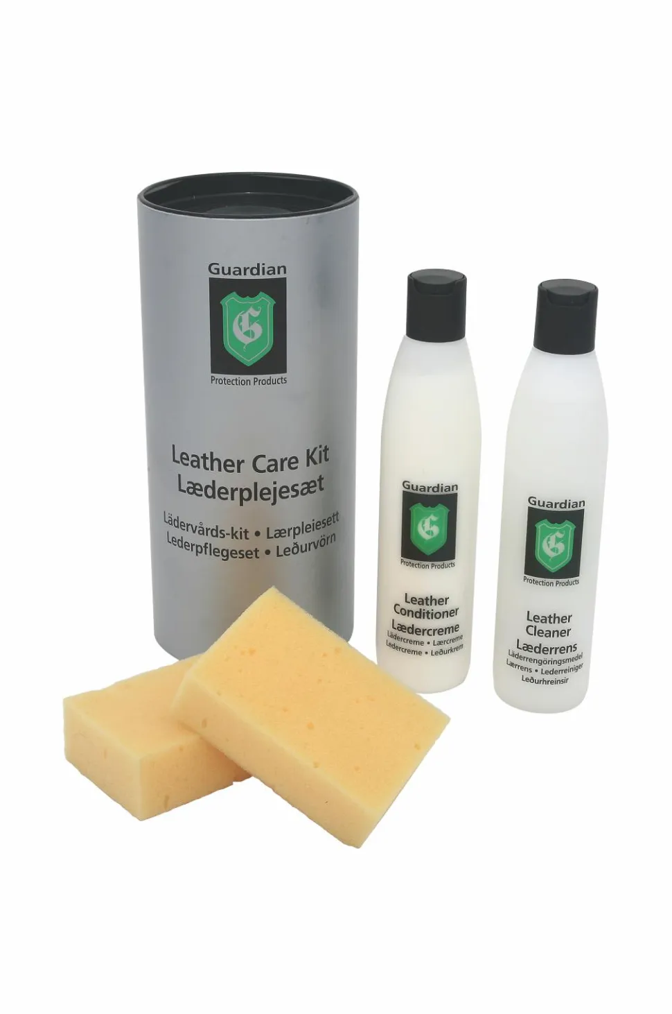 Guardian læderplejesæt indeholder alt det, der er brug for til vedligeholdelse af anilin, semianilin og pigmenteret læder. Indhold: 250 ml. Guardian læderrens, 250 ml. Guardian lædercreme, 2 påføringssvampe. Produkterne i læderplejesættet hjælper med at bevare læderets naturlige egenskaber og udseende. Med regelmæssig vedligeholdelse med Guardian læderrens og Guardian lædercreme reduceres risikoen for udtørring, revner og blegning. Produkterne i Guardian læderplejesæt er testet af Teknologisk Institut og bærer Indeklimamærket.