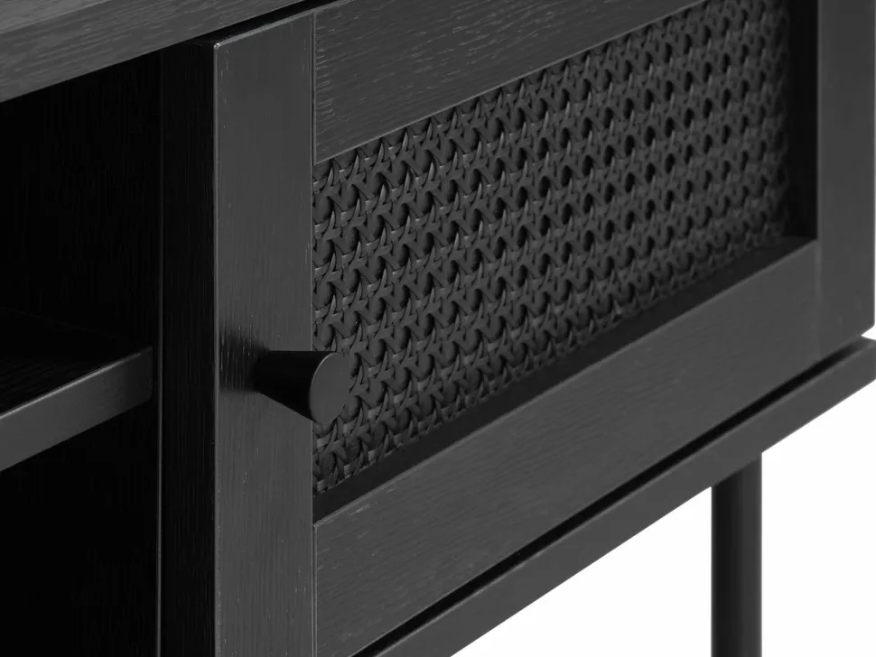 Brooklyn-kollektionen består af attraktive, alsidige møbler i en moderne stil med en retro-følelse og mange detaljer såsom sort polyrattan låge og skuffeindsatser, kombineret med sorte metalhåndtag og -ben og en stilfuld, tekstureret sort egefinish.