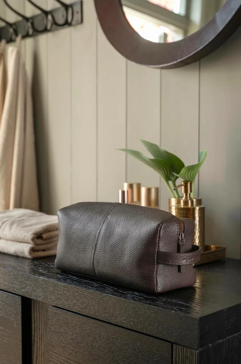 Giv dit badeværelse et løft med denne eksklusive sæbedispenser i bronzefarvet metal. Den blanke finish og det slanke, minimalistiske design gør den til en stilfuld accent til enhver vask – både praktisk og dekorativ. Den er fremstillet af massivt metal og har en glat pumpemekanisme, der gør det nemt at dosere sæbe eller håndlotion. Et diskret indgraveret halvor bakke-logo på undersiden tilføjer et diskret kvalitetsmærke. Perfekt alene eller sammen med andre ting fra samme serie for et sammenhængende, elegant look.