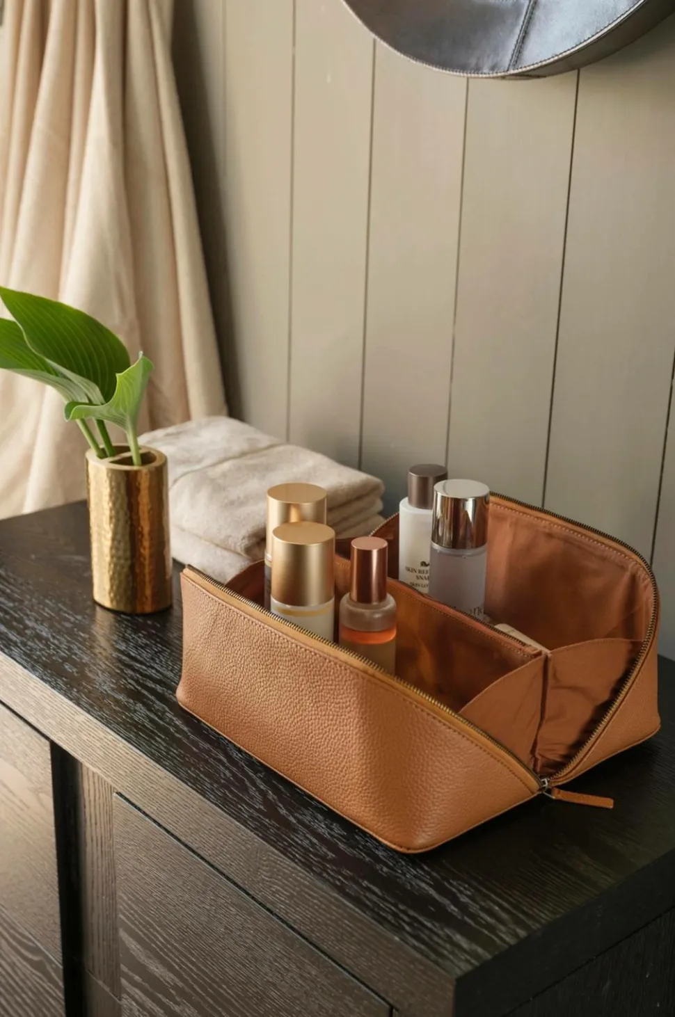Løft dit badeværelse med denne eksklusive tandbørsteholder i poleret bronzefarvet metal, designet af halvor bakke. Med sin blanke finish og minimalistiske form giver den et luksuriøst, moderne præg – ideel til dem, der sætter pris på stil i alle detaljer. Den solide metalkonstruktion sikrer vægt og stabilitet, mens den reflekterende overflade giver en følelse af elegance til vaskeområdet. Et diskret indgraveret halvor bakke-logo på undersiden fungerer som et subtilt tegn på kvalitet og tidløst design. Brug den alene, eller sæt den sammen med matchende elementer fra samme serie for at skabe et sammenhængende look på badeværelset.
