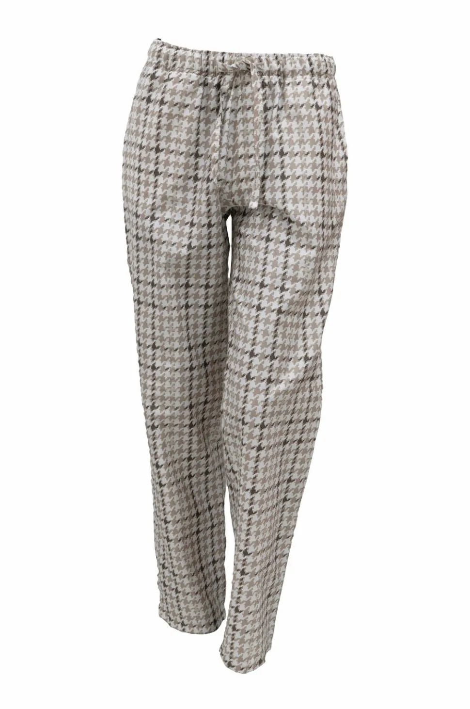 Bløde pyjamasbukser i 100% bomuldssatin fra Halvor bakke med et smukt houndstooth-mønster. De er perfekte sammen med natkjolen for en luksuriøs og behagelig start på dagen. Fremstillet af 100 % bomuldssatin, tc 400, og er oeko-tex-certificeret. Med brystlomme og sidelommer.