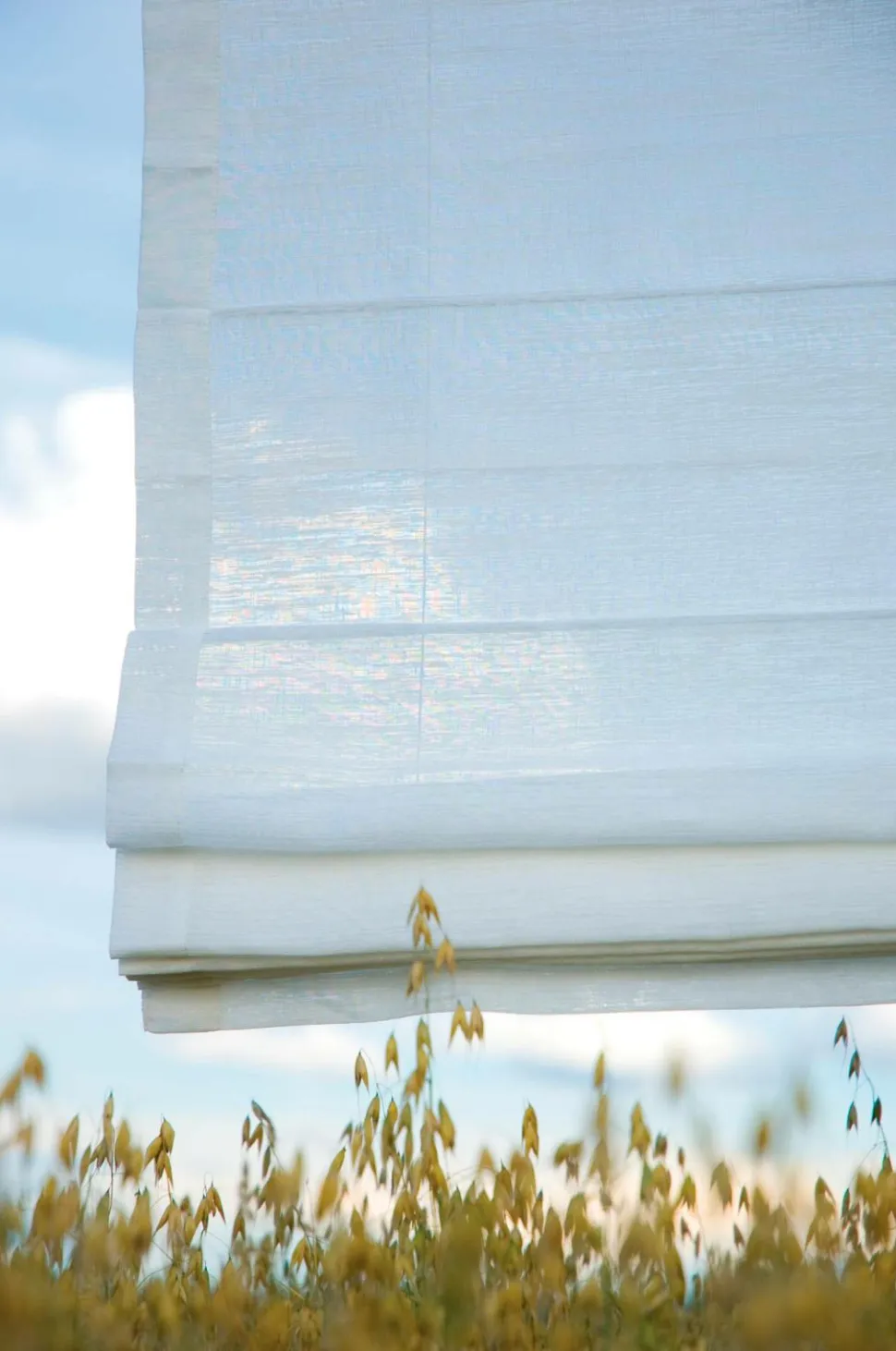 Dekorativt liftgardin med blankt, skinnende stof i polyester. Højden reguleres med line. Skinne med velcrobånd og fastgøringsanordning til line medfølger. Højde 160 cm. Væg-/loftbeslag medfølger.