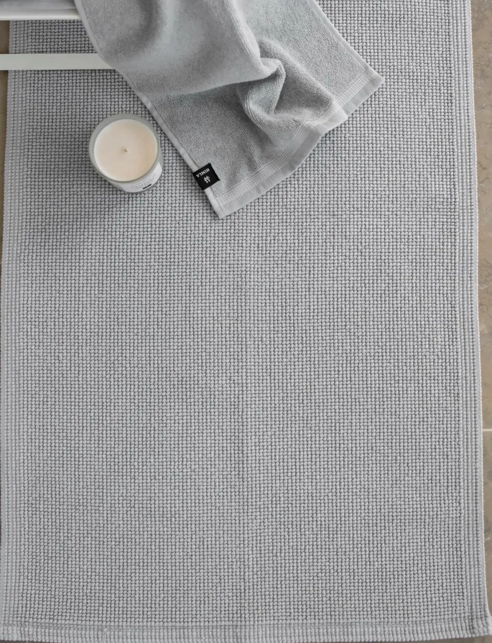 Love Bademåtten er tætvævet med en tydelig struktur. Love passer fint sammen med Lina-håndklædet. Maskinvask 60°C, krympning 2%.