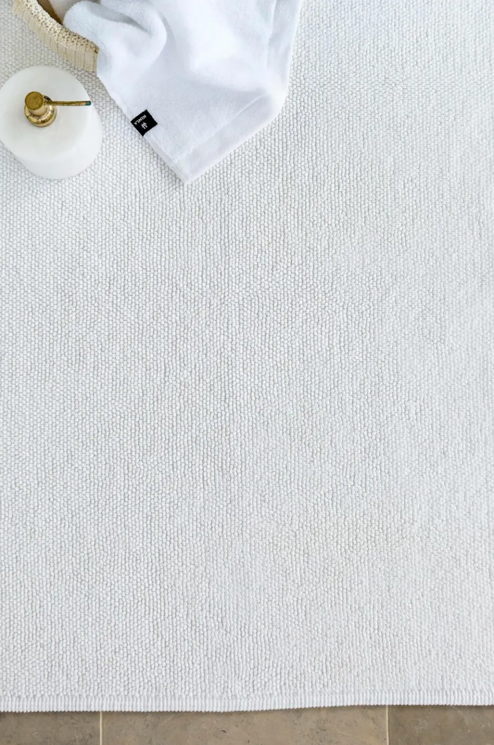 Max Bademåtten har et klassisk, tidløst look. Bademåtten har tykke garner, som giver en fin struktur, og den er blød at gå på. Max bademåtten er vasket for at give et blødt og afslappet look og passer fint til Maxime-håndklædet. Maskinvask 60°C, krympning 2%.