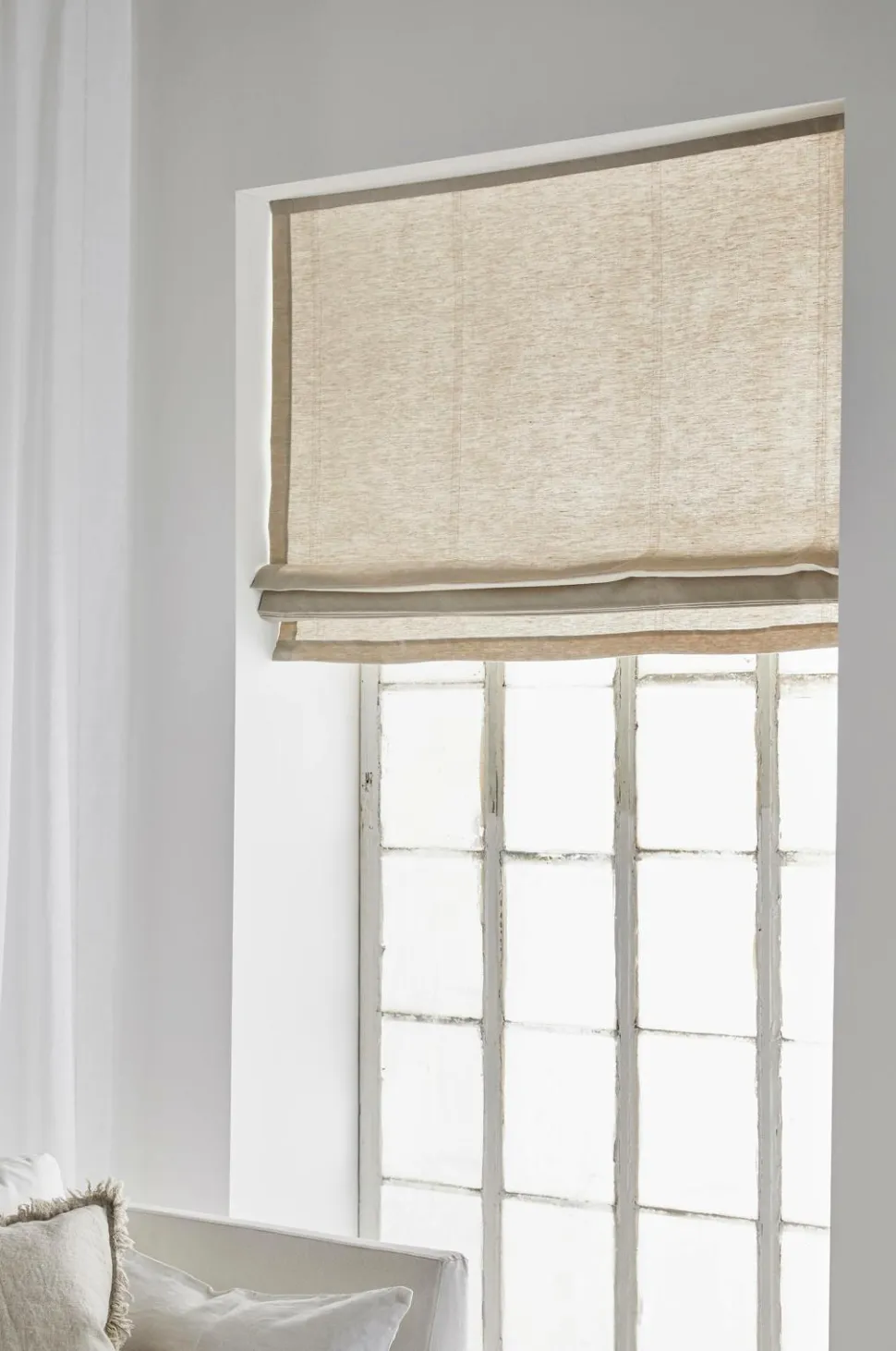 Ebba Romergardinet har en fin struktur i tætvævet halvlinned og et klassisk look. Vævningen er uvasket og har en mat, velstrøget overflade. Gardinet passer perfekt i alle hjemmets rum og fås i flere størrelser, så det passer til forskellige typer vinduer. Rullegardinet har velcro i toppen for nem montering og træksnore bagpå, så det kan løftes op og ned. Breddestørrelser mellem 60 og 110 cm er udstyret med 3 træksnore, og størrelser mellem 120 og 160 cm har 4 træksnore. Snorene sidder på højre side. I højeste position er gardinets længde ca. 15-20 cm.