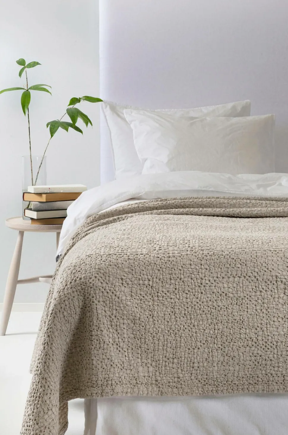Dani er et sengetæppe i 100% bomuld vævet i et fint strukturmønster. Sengetæppet er stenvasket efter syning, hvilket giver en blød og afslappet følelse. Certificeret i henhold til OekoTex Standard 100. Maskinvask 40°C. Undgå direkte sollys, da farven kan blive afbleget.