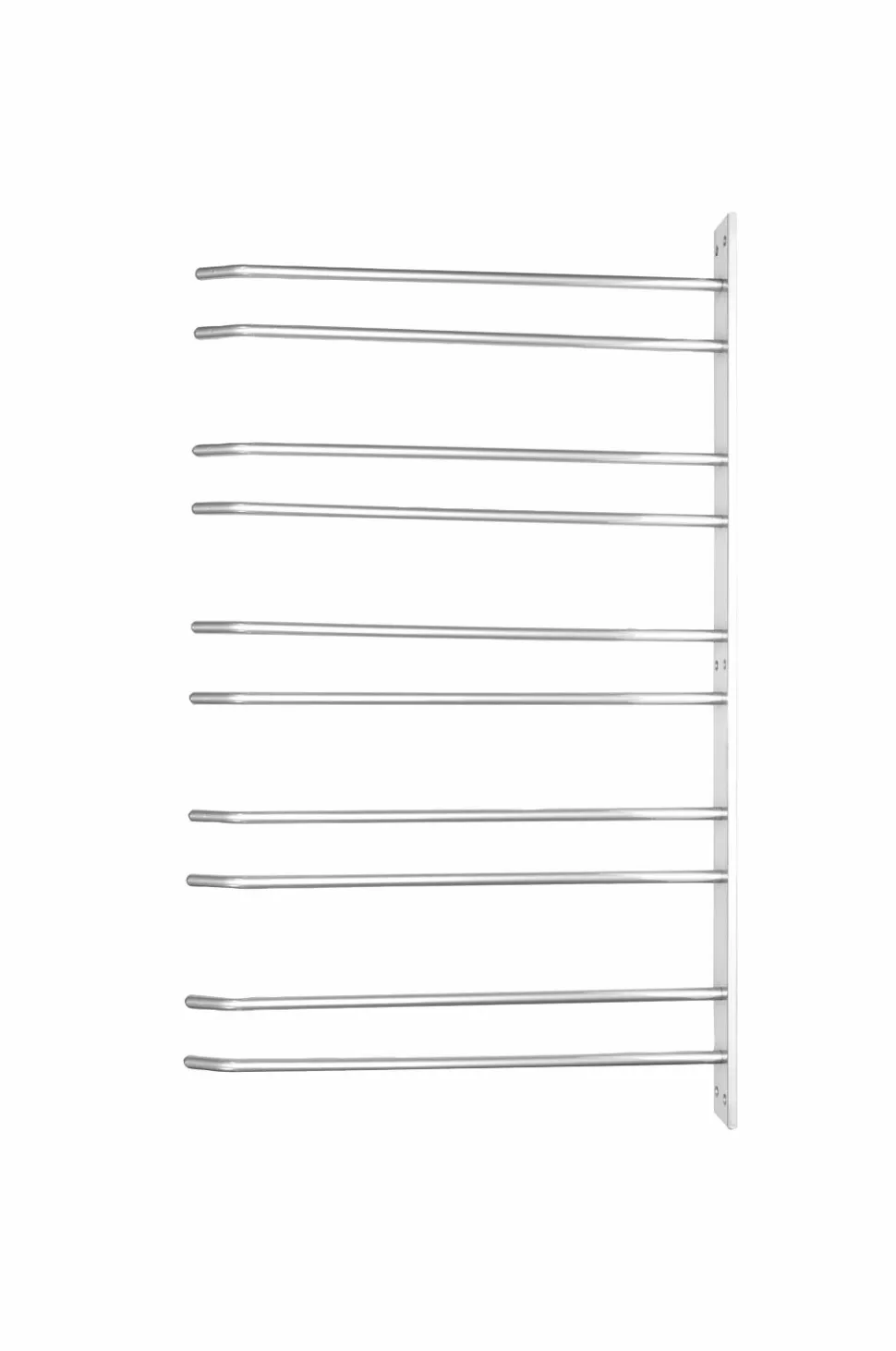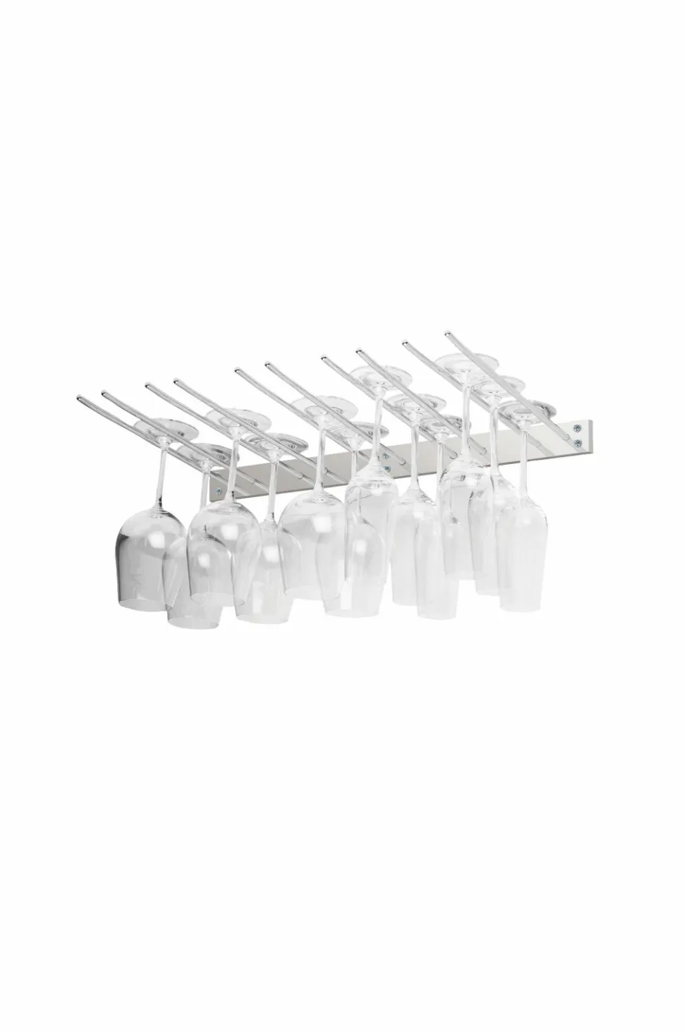 Glasophæng i lakeret bar-stil med fem rækker til vægmontering. Bøjlen er en grå med en dybde på 300 mm og rummer 15 glas. Bredde: 55 cm, total dybde inkl. plade: 32 cm, højde: 4 cm.