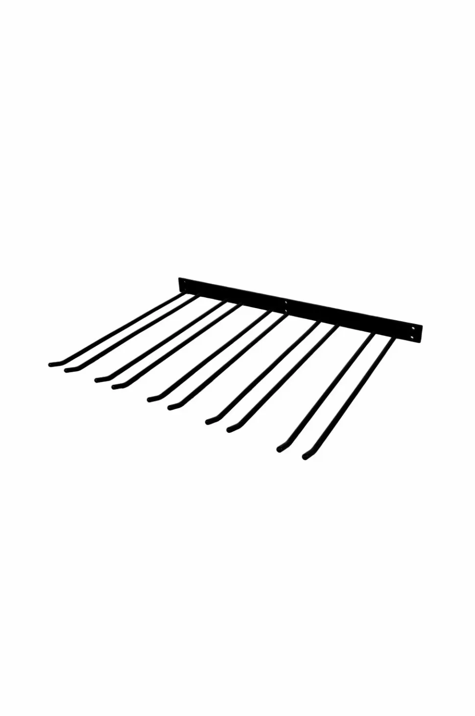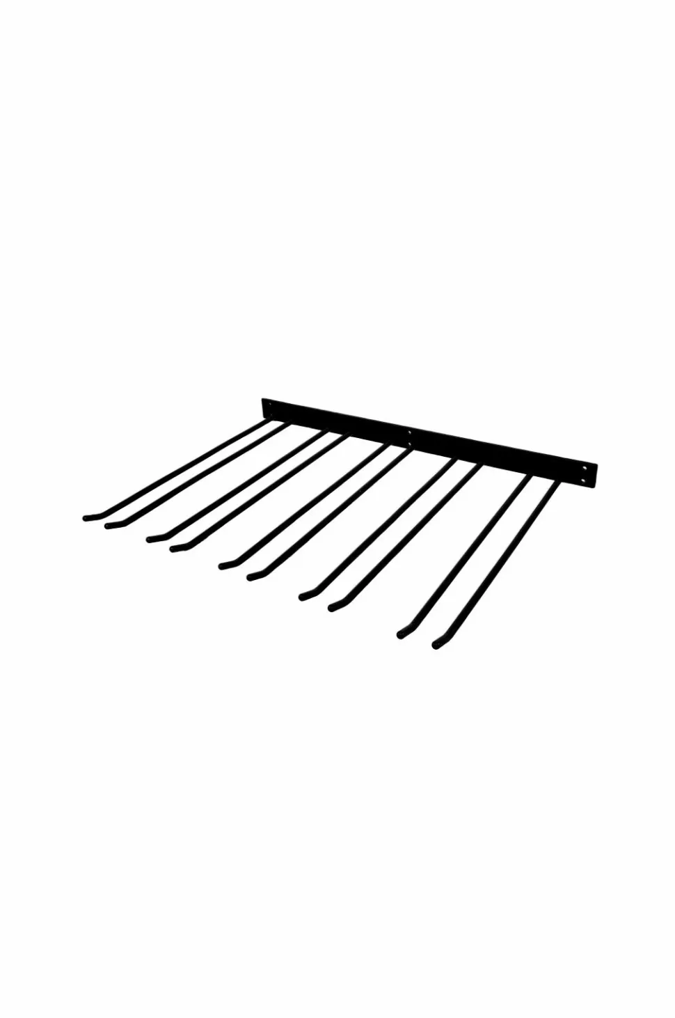 Sort glasophæng i barstil med fem rækker til vægmontering, et praktisk sort glasophæng til vægmontering, 400 mm dybt og med plads til 20 glas. Bredde: 55 cm, total dybde inkl. plade: 42 cm, højde: 4 cm.