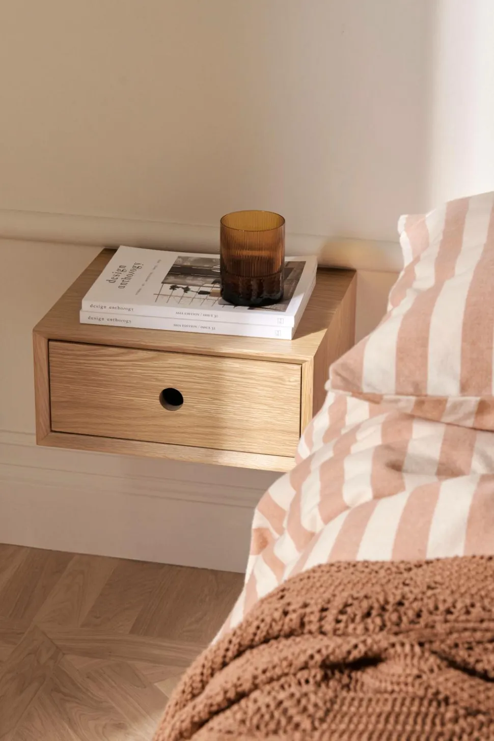 • Vægmonteret Sengebord i egetræsfinér MDF