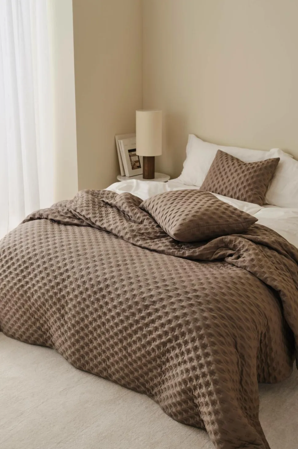 • Quiltet sengetæppe med blød overflade