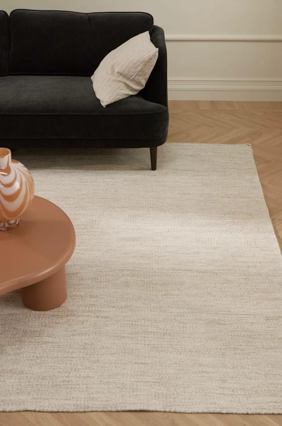 • Glatvævet uldgulvtæppe med meleret effekt og livlig overflade