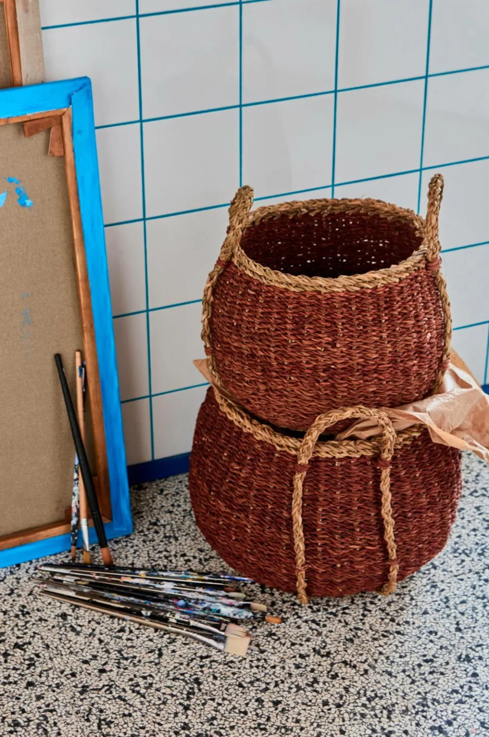 Giv dit hjem et taktilt løft med dette par håndlavede opbevaringskurve, fremstillet af naturligt havgræs. Deres runde form og praktiske håndtag tilføjer både charme og funktionalitet, så opbevaring bliver et stilfuldt detalje overalt – læg tæpper i stuen, brug dem til hatte og tørklæder i entreen, eller brug dem som dekorativt accent i soveværelset. Den dybe, varme farve skiller sig øjeblikkeligt ud, samtidig med at den passer ind i både lyse og mørke interiører, så hvert hjørne føles indbydende og gennemtænkt indrettet. H: 30 cm