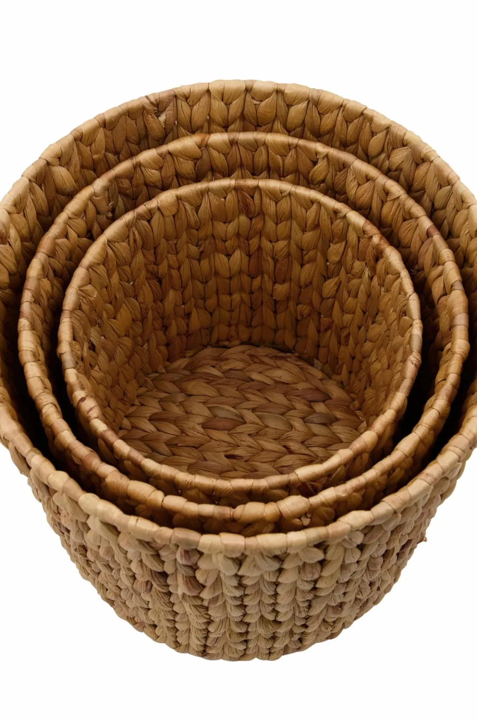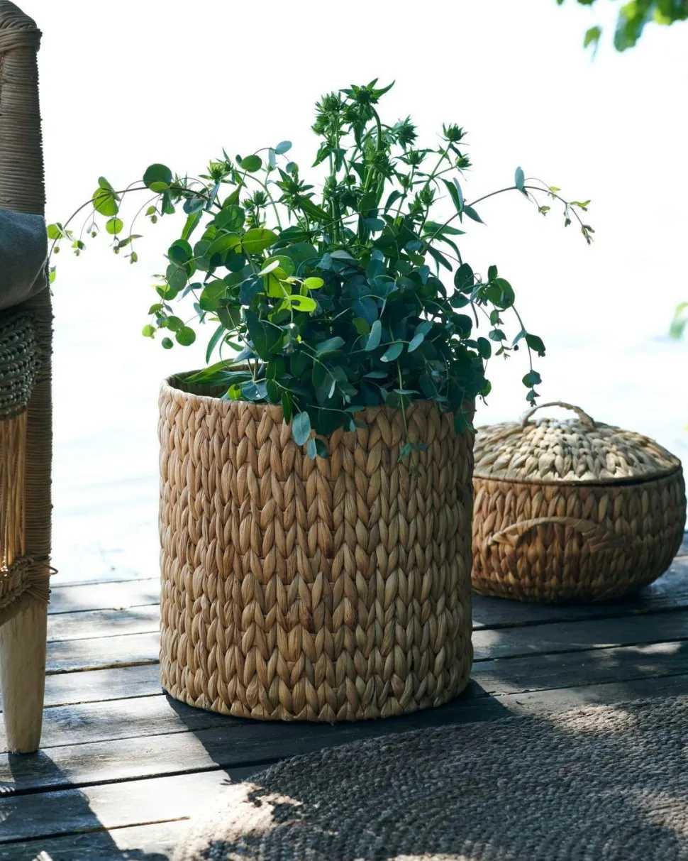 Disse tre håndvævede kurve fra House Doctor er en elegant opbevaringsløsning, der giver dig uendelige muligheder. De er lavet af vandhyacint med en ståltrådsramme som gør dem robuste. Med deres brede mønstre og naturlige materialer er kurvene et kærkomment supplement til køkkenet, stuen eller badeværelset for at skabe balance mellem metal, marmor og andre materialer. Hvis du leder efter et dekorativt alternativ til opbevaringskasser, er kurvene Roun perfekte. Bruges til at opbevare hverdagsgenstande, strikketøj eller måske tøjtilbehør i gangen. S: Højde 22 cm og diameter 22 cm. M: Højde 26 cm og diameter 26 cm. L: Højde 30 cm og diameter 30 cm.