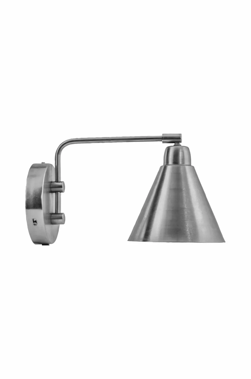 Bring moderne raffinement ind i dit hjem med denne væglampe i børstet sølv. Det håndlavede jern design har en konisk skærm og afrundet beslag, forfinet med en slank finish og elegante messingdetaljer. Den hvide indvendige foring sikrer et blødt, fokuseret lys – perfekt til at skabe læsekroge, oplyse gangarealer eller tilføje et moderne accent ved din seng. Den nemme tænd/sluk-tekstilsnor gør den daglige brug enkel og stilfuld.