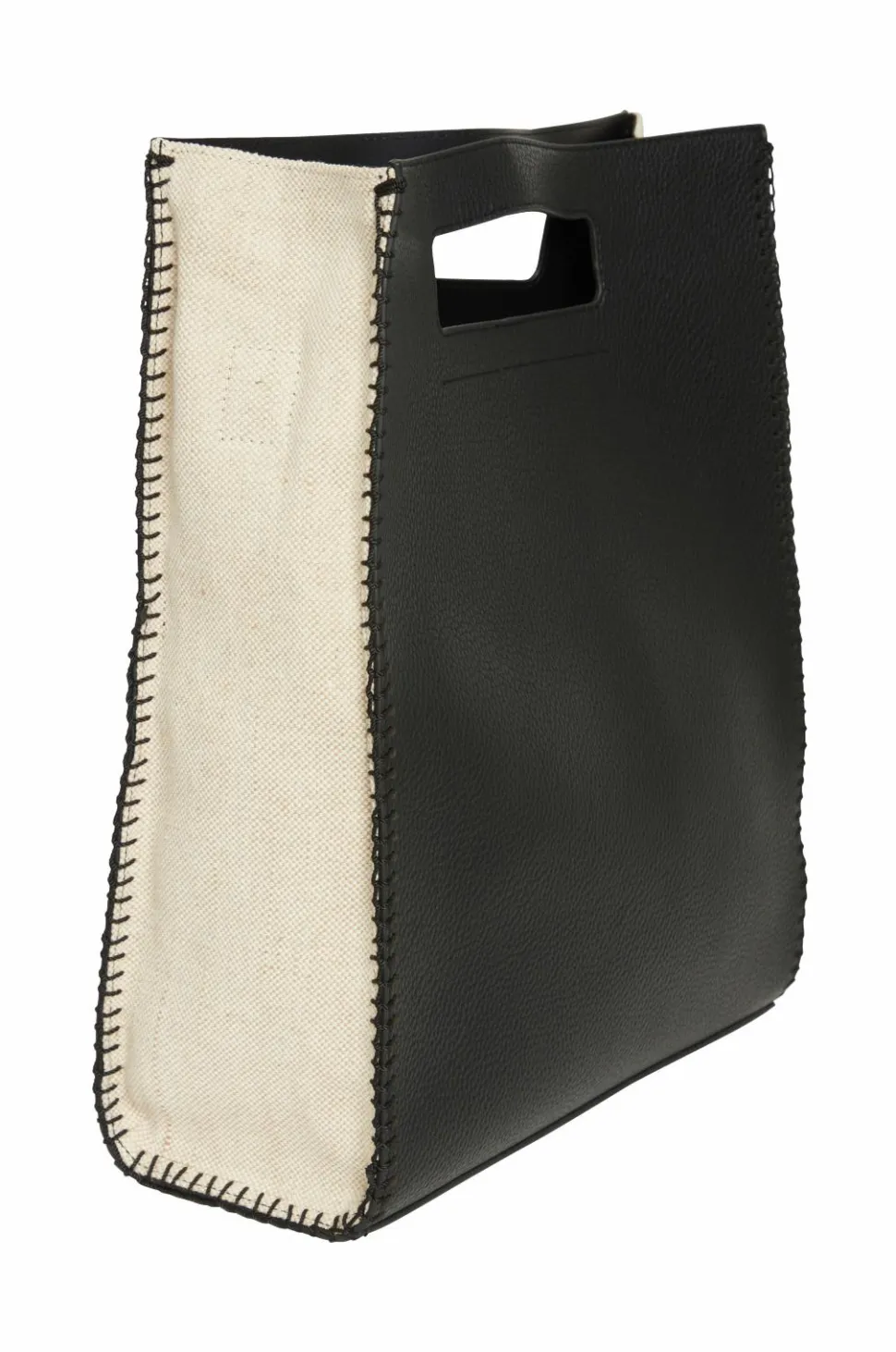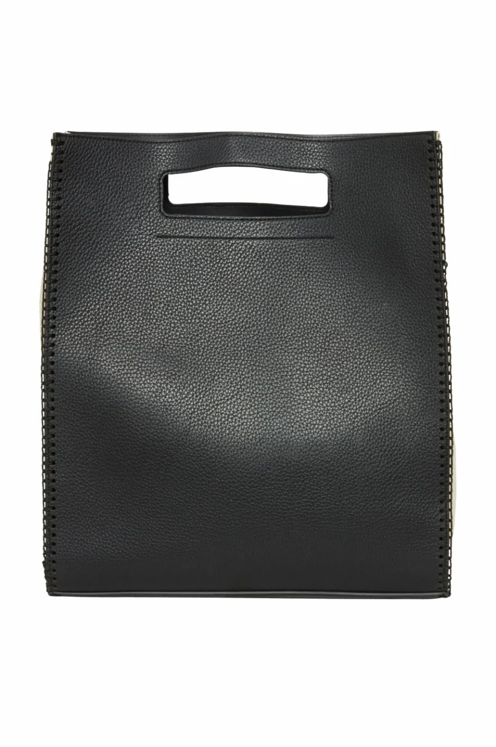 • Taske i imiteret læder med vævet tekstil på siderne