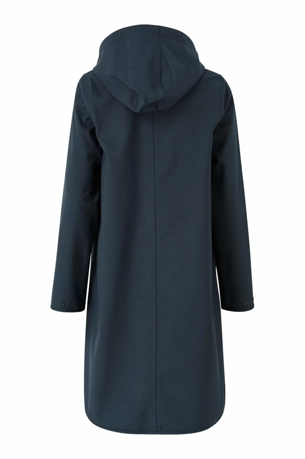 Regnfrakke fra Ilse Jacobsen med A-formet silhuet, i blødt og åndbart softshellmateriale. Vandsøjletryk 5000 mm og åndbarhed 3000 g/m2/24h. Alle sømme er tapede for at holde vand ude. Indersiden er i blød fleece. Aftagelig hætte som har løbegang og stop. Høj krave og 2-vejslynlås fra YKK. To lommer med lynlås. Justerbar vidde i ærmekant med trykknapper. Sideslids som kan lukkes/åbnes med trykknapper. Længde ca. 101 cm i str. 36.