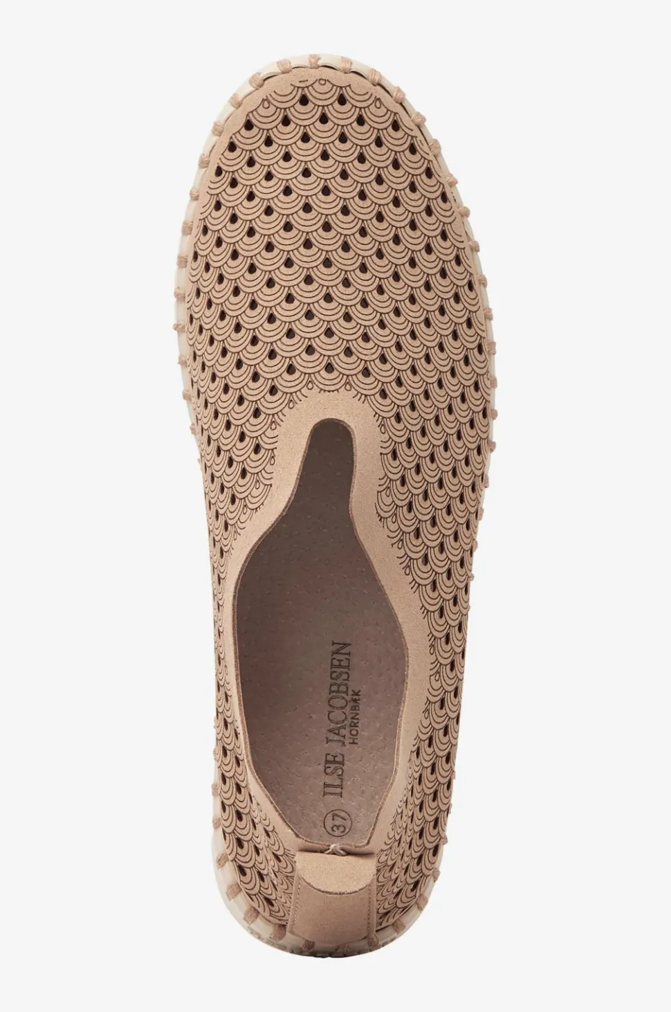 Sko Tulip 3275 fra Ilse Jacobsen i smidig slip on-model med perforerede huller og mønster. Tyk sål med synlige riller og dekorativ søm langs kanten. Logo bag på sålekanten. Blød indersål i skind.