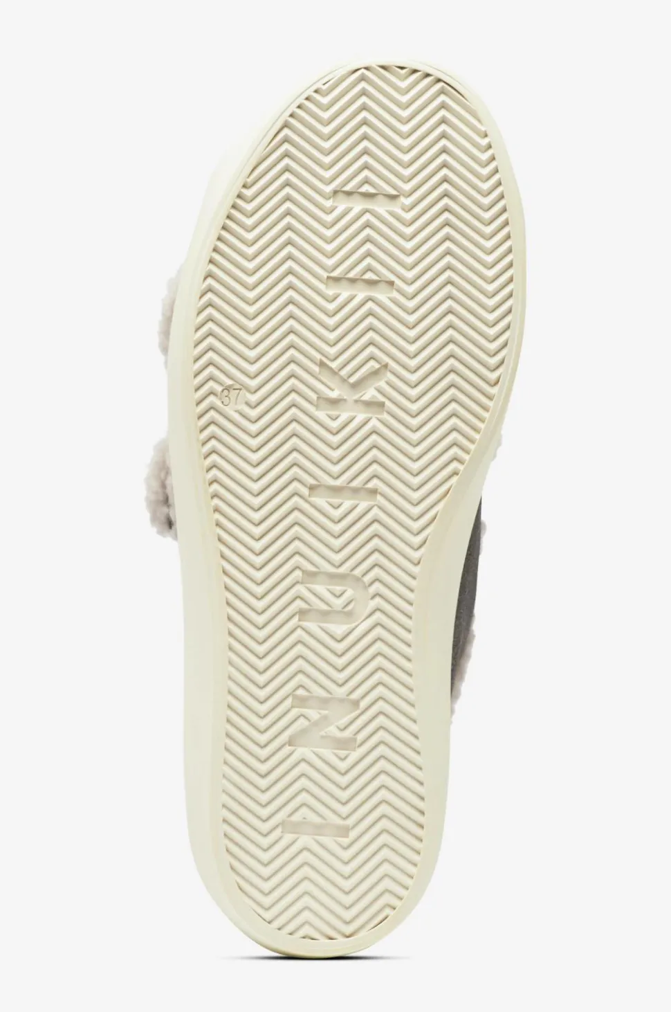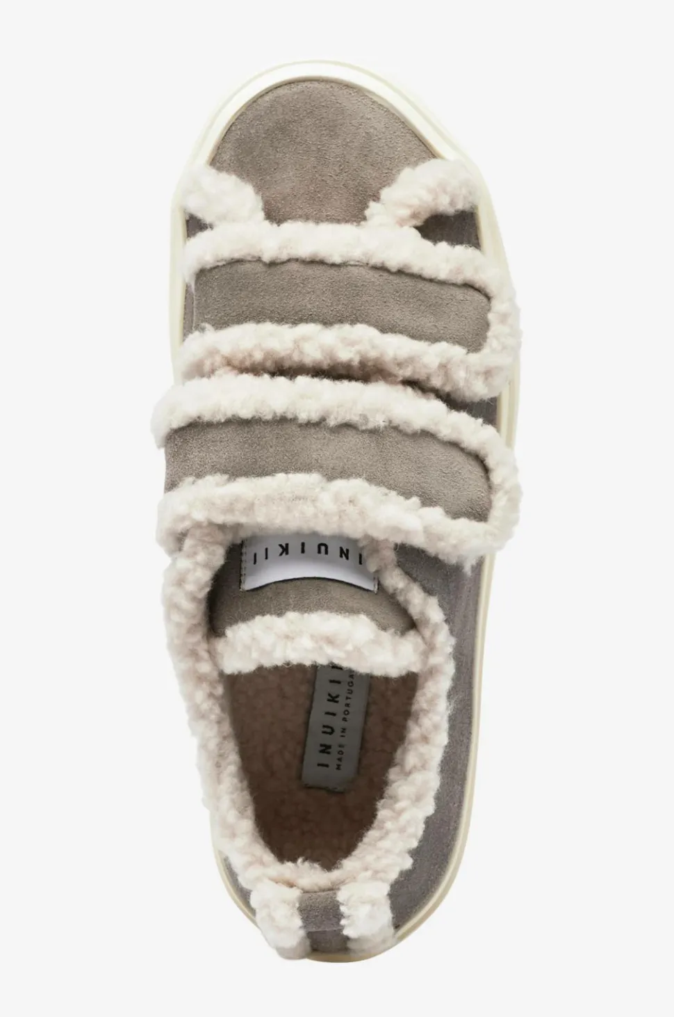 • Øvredel i ruskind og fåreuld med velcrolukning