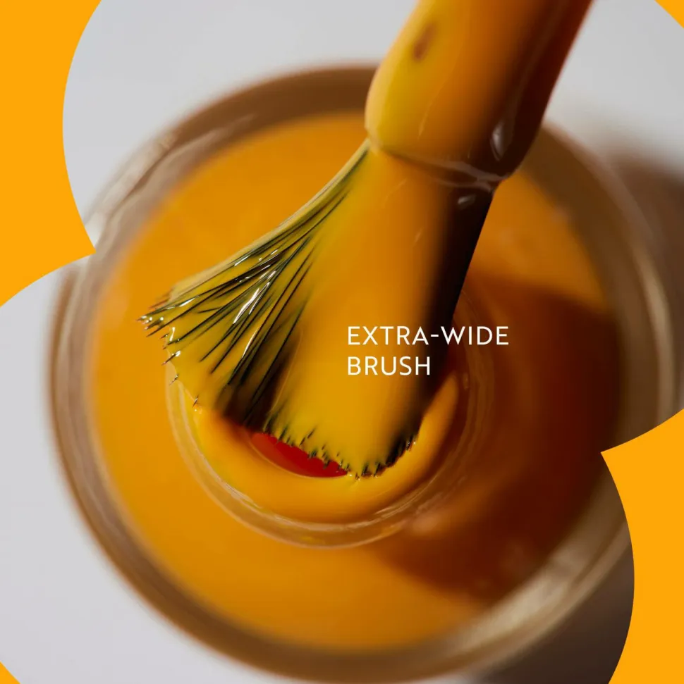– Fuld, jævn dækning uden striber – takket være den unikke, ekstra brede pensel