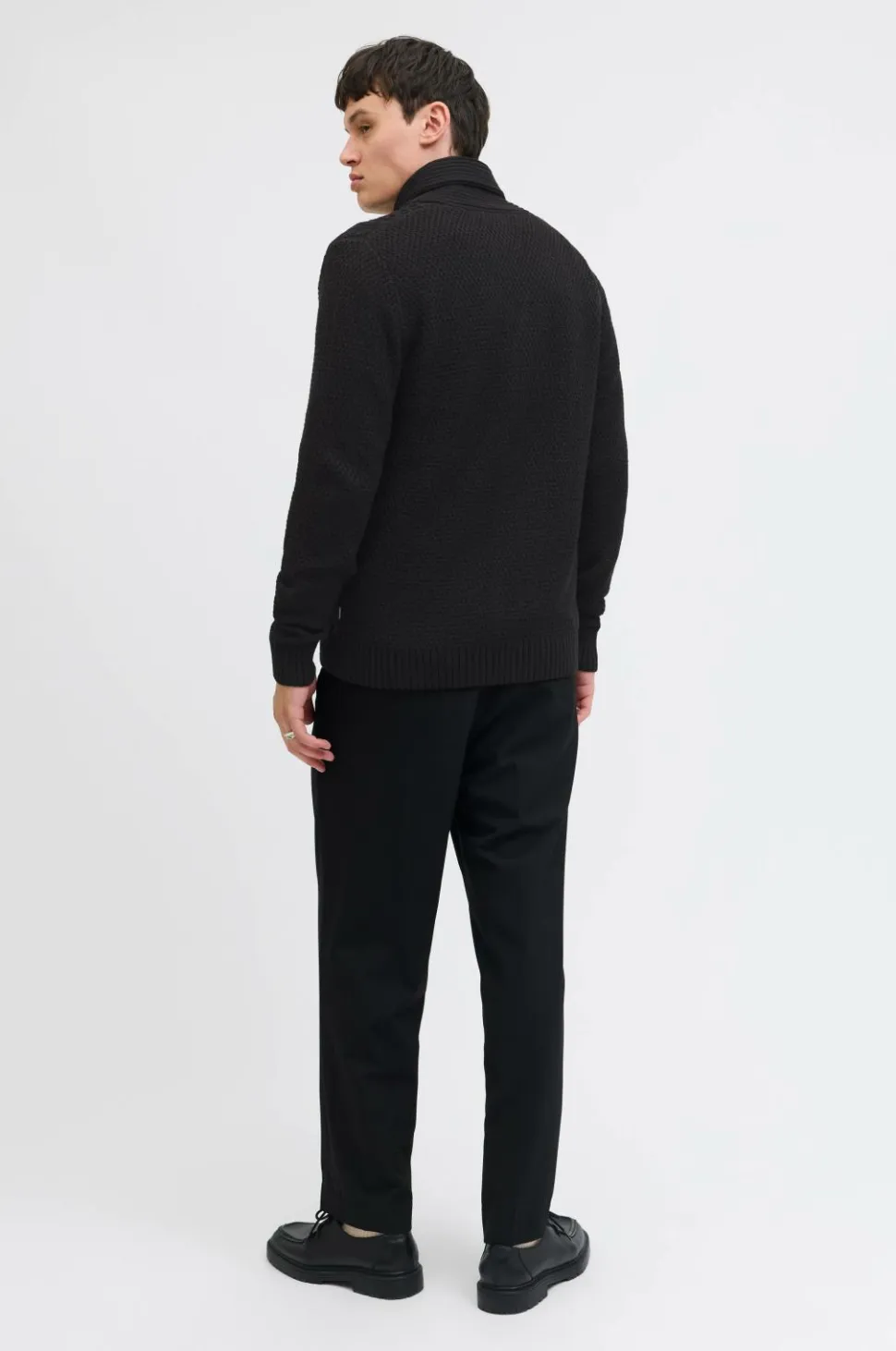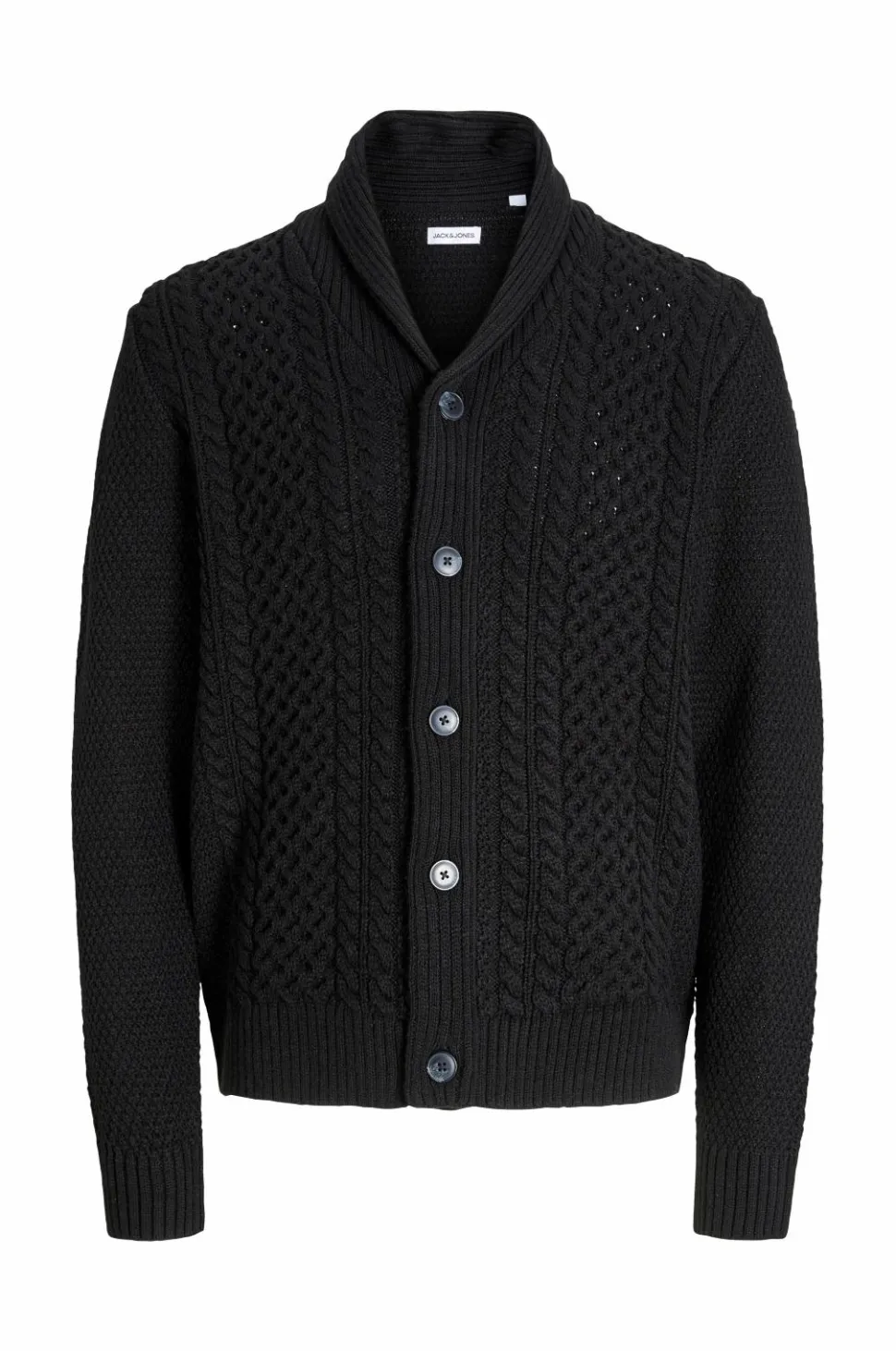 • Langærmet, kabelstrikket cardigan med krave