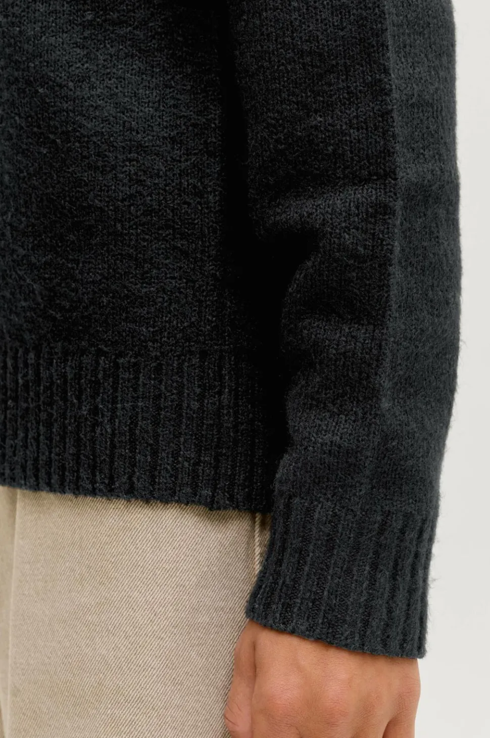 • Ribstrik ved manchetterne og ved nederste kant