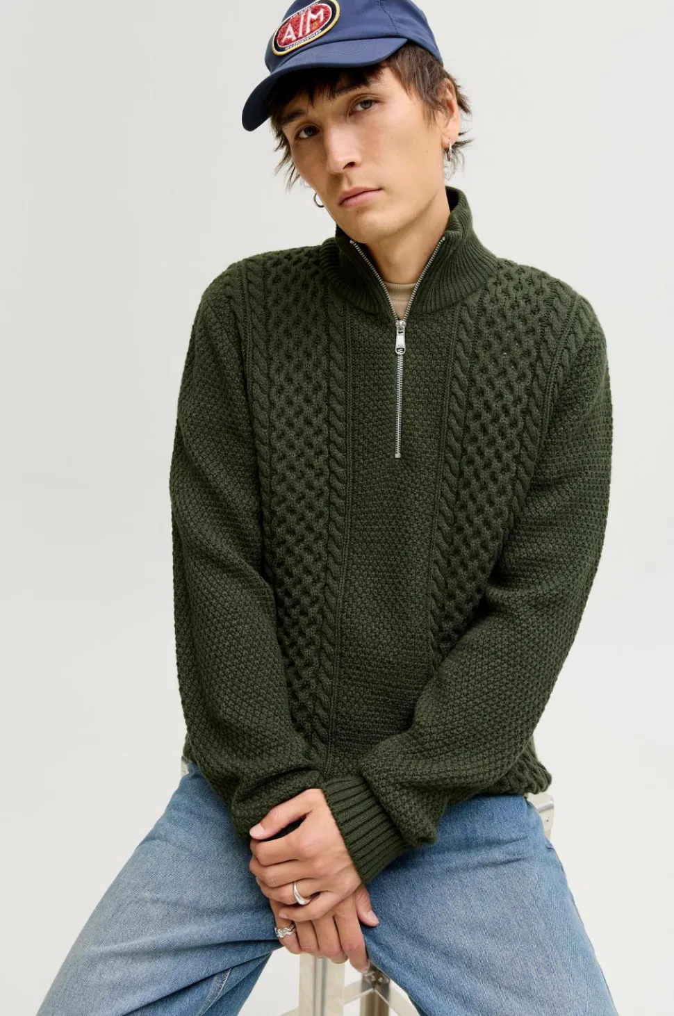 • Strukturstrikket, langærmet Pullover med krave