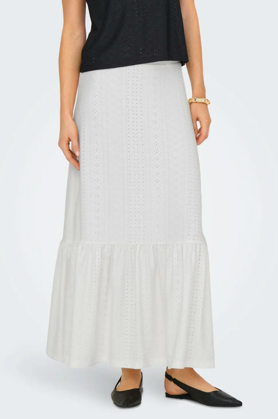 • Lang model med svaj med hulbroderier