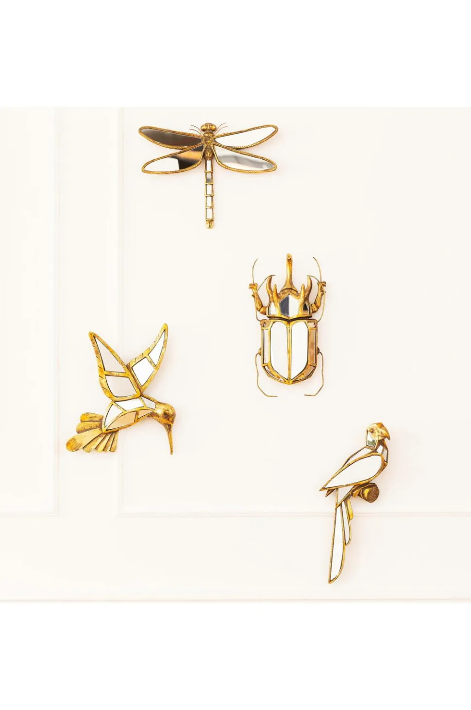 Et smukt spejl i form af en bille, der med garanti vil være et blikfang på enhver væg. Spejlglasset i kombination med den guldfarvede ramme giver denne håndlavede vægdekoration en raffineret stil. Passer perfekt ind i både moderne og klassiske indretninger. Denne dekoration er et must, hvis du elsker urban jungle-stilen. Vægdekorationen bliver ekstra imponerende i kombination med andre spejle fra samme kollektion. Fremstillet af spejlglas og plast.
