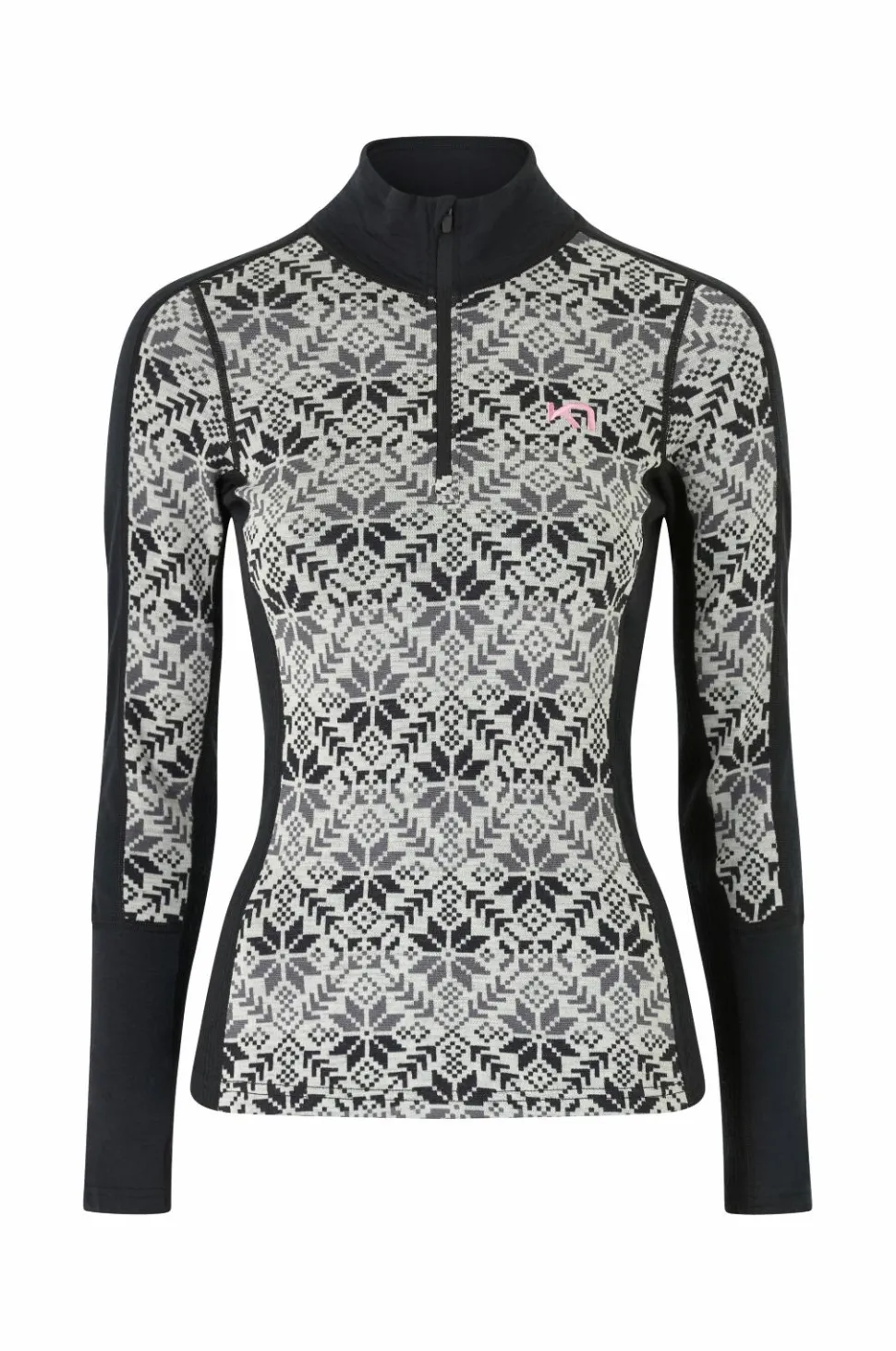 • Jacquardstrikket termisk top i merinould