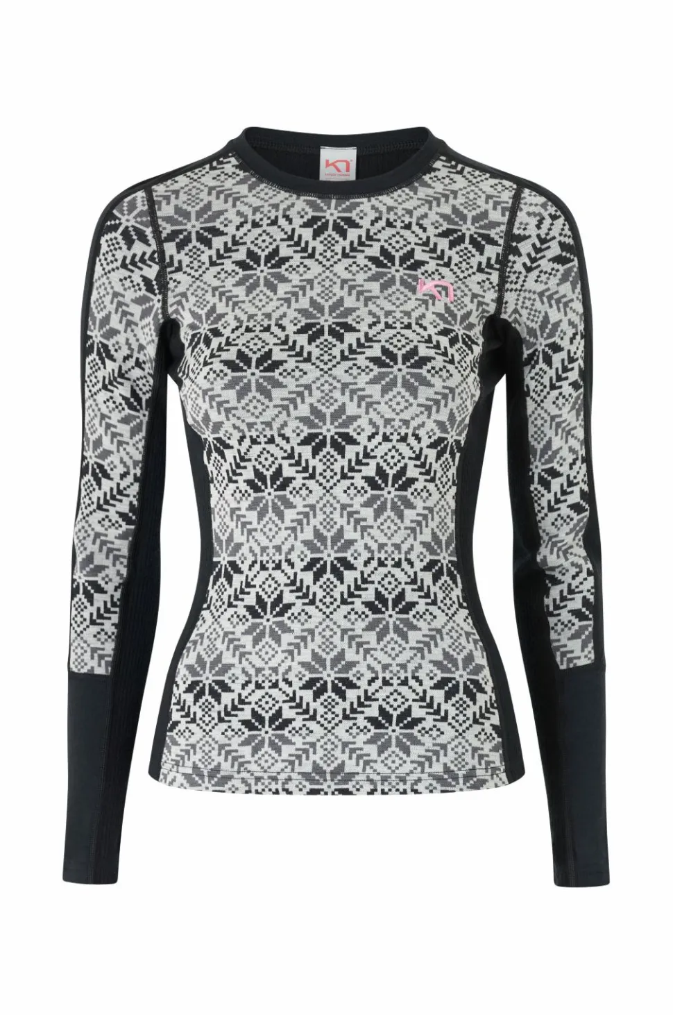• Jacquardstrikket termisk top i merinould