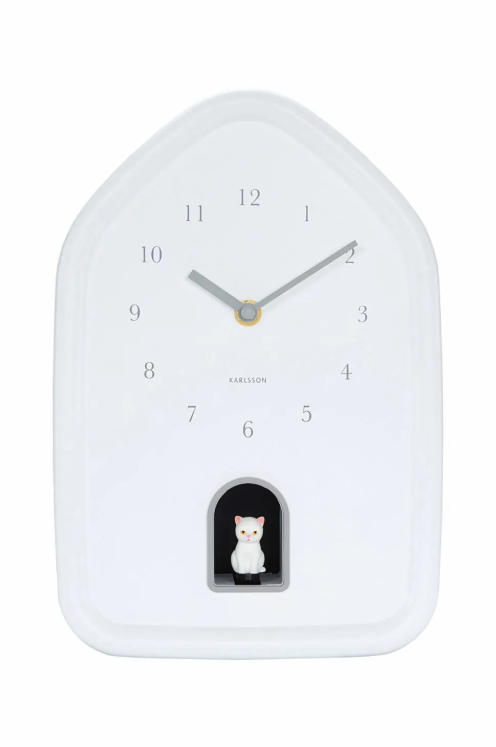 Karlssons modern kitty vægur kombinerer enkelhed med et legesygt touch. Hver time dukker en sød killing op og miaver sagte. Det husformede design og de matte farver giver uret et varmt, modern look. Perfekt til katteelskere og dem, der sætter pris på elegant, legesygt design.