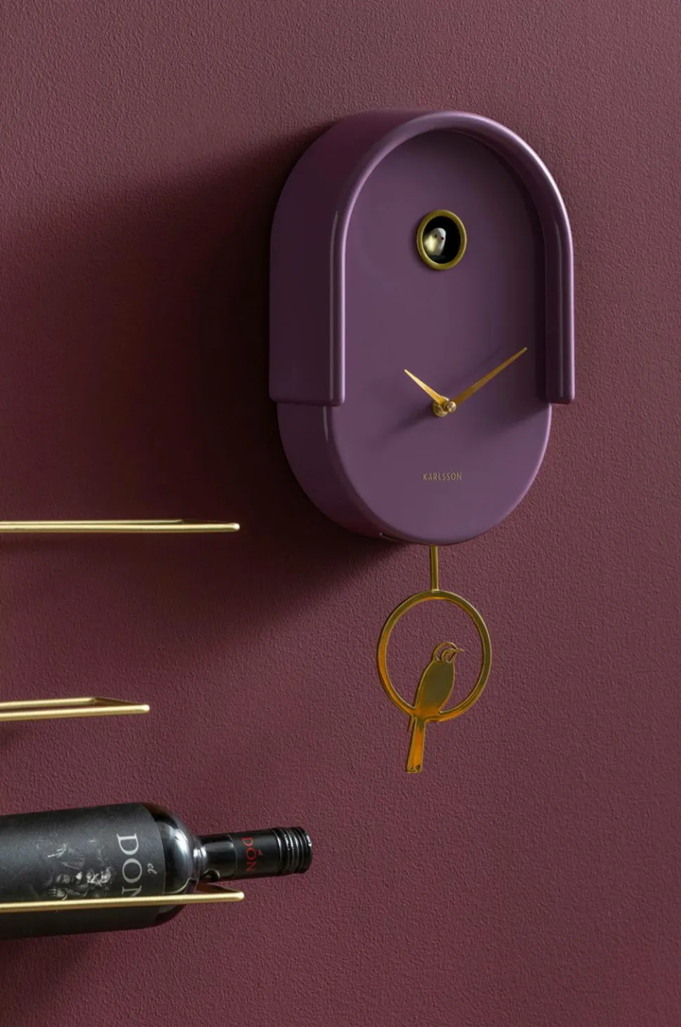 Design med karakter. Karlssons vægur ” tweet “, designet af Callum Macsorley, udstråler luksus med sin blanke finish og raffinerede detaljer. Uret har et pendul og en elegant fugleakcent, der kommer til live på bestemte tidspunkter. De runde former og guldfarvede elementer giver det et legesygt, men stilfuldt look. Et slående objekt, der helt sikkert vil appellere til designelskere.