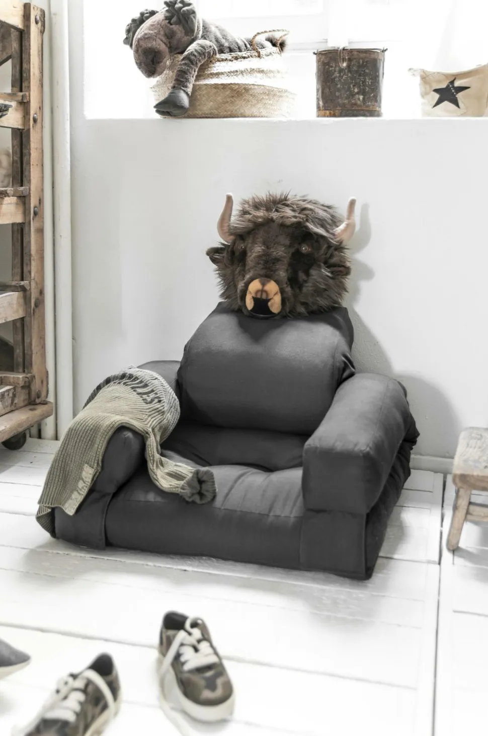Play . Relax . Repeat – Mini Hippo er beregnet til afslapning, men den er bestemt ikke lad. Mini Hippo er en unik stol, der er lige så behagelig som den er elegant. Men Mini Hippo er mere end en stol, du kan nemt lave den om til en seng. Faktisk en meget dejlig seng!