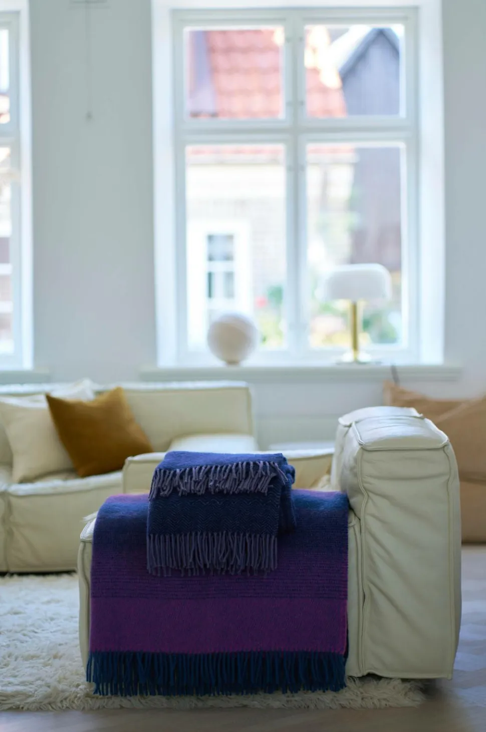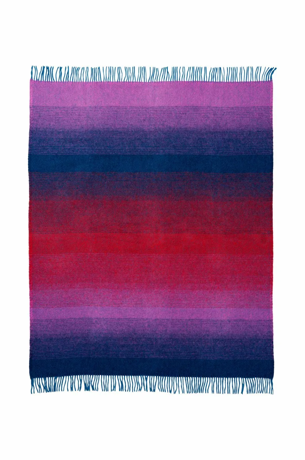 Aurora-tæppet i 100 % lammeuld leder tankerne hen på nordlysets magiske farvespil. Det er designet af Maxjenny og byder på bløde penselstrøg i pastelfarver, grøn-blå, rød-pink og blå-lilla. Uldens blødhed og de kunstneriske farver gør Aurora til et statement i indretningen.