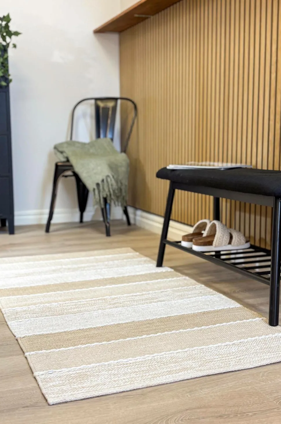 Båstad er et stilfuldt, stribet, håndvævet garntæppe, der giver et levende præg til ethvert rum. Farverne skifter gradvist fra mørkere nuancer i kanterne til lysere toner i midten, mens hvide syninger elegant markerer overgangene. Tæppet er fremstillet af ren bomuld og er både slidstærkt og blødt. Den brede farvepalet gør, at båstad passer perfekt til både minimalistisk og moderne interiør.